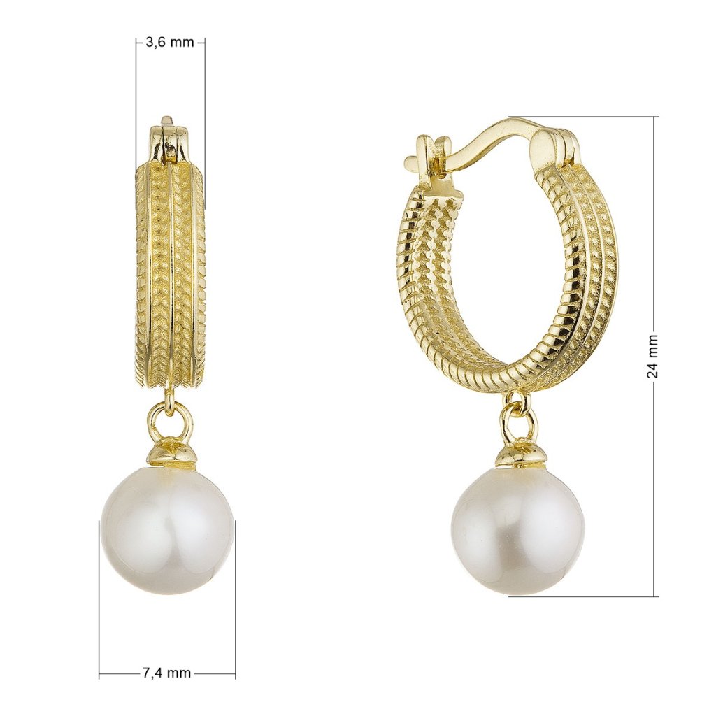 Pozlátené náušnice kruhy so zavesenou riečnou perlou 21127.1