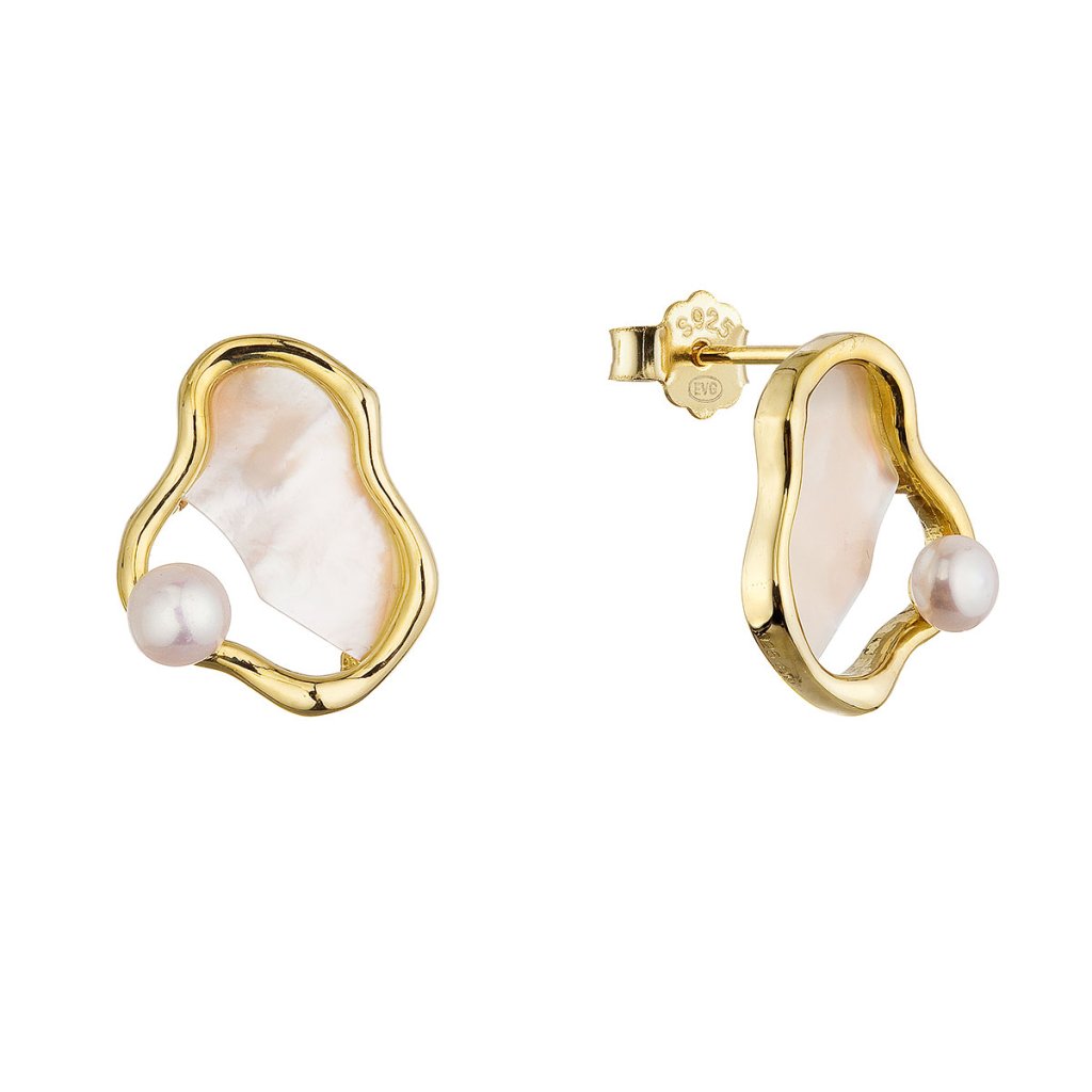 Pozlátené náušnice nepravidelného tvaru s riečnou perlou 21120.1