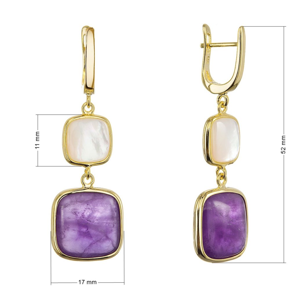 Pozlátené náušnice s ametystom a bielou perleťou 11742.3