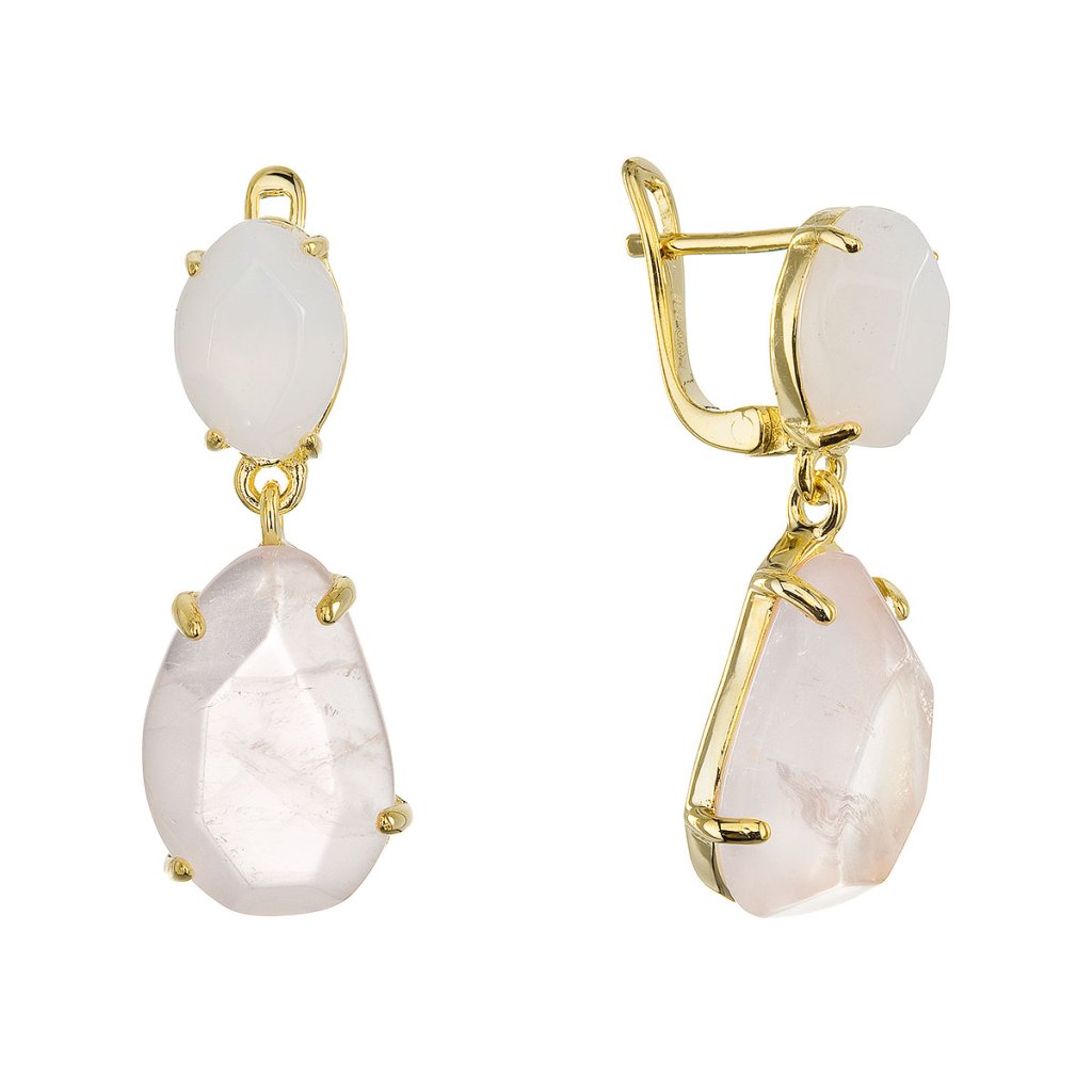 Pozlátené náušnice s ruženínom a chalcedónom 11740.3