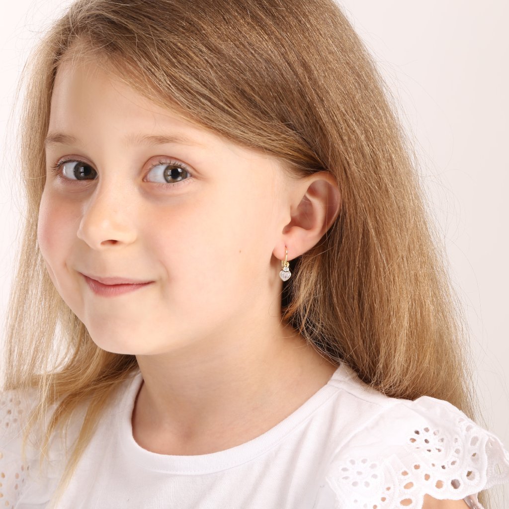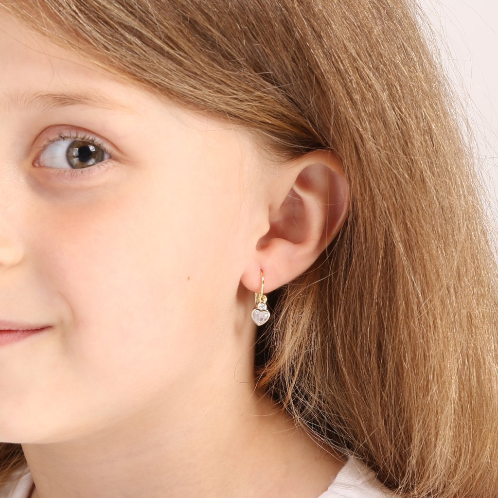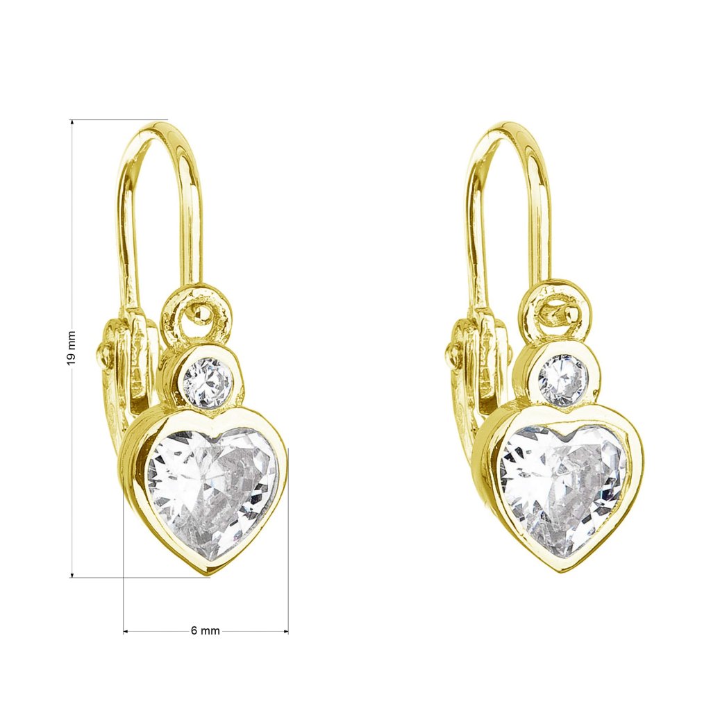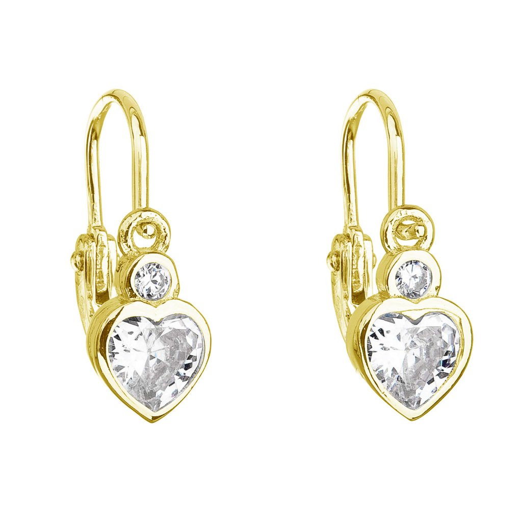 Pozlátené strieborné detské náušnice visiace so zirkónom biele srdce 11178.1