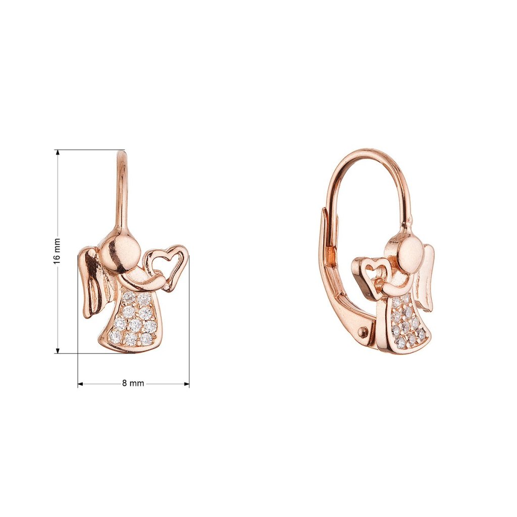 Pozlátené strieborné náušnice anjeli so srdiečkami 11721.1 rose gold