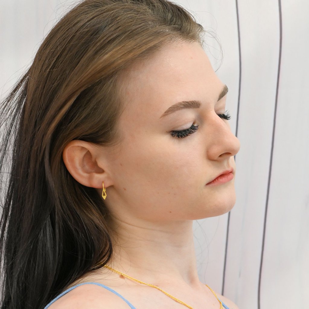 Minimalistické náušnice v modernom geometrickom tvare. Tieto jednoduché, ale zaujímavé náušnice skvele doplnia váš outfit.Náušnice sú vyrobené z pozláteného striebra o rýdzosti 925/1000. Šperk neobsahuje prídavok niklu, a tak ho môžu nosiť aj ľudia náchylní na alergické reakcie. Náušnice majú zapínanie na klapku , ktorá ich ochráni proti nechcenej strate.