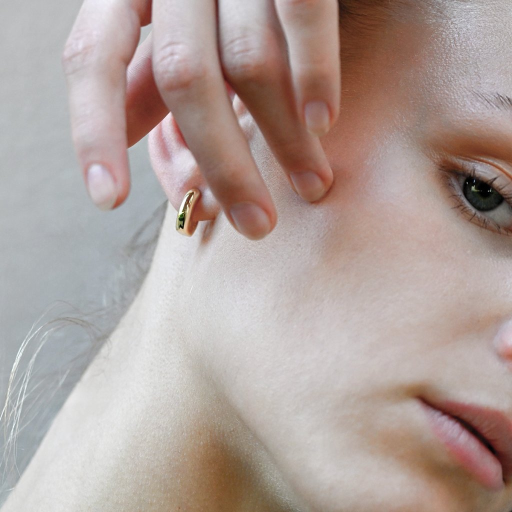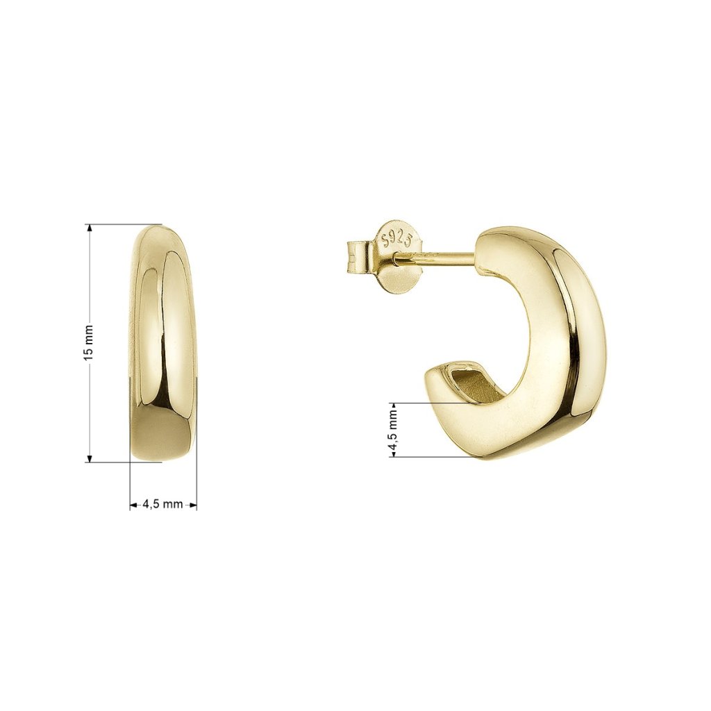 Jednoduchosť, ktorá zaujme na prvý pohľad. Tieto pozlátené strieborné náušnice v tvare nedokončeného kruhu v sebe spájajú moderný minimalizmus a jemnú hravosť. Hladký, mierne zvlnený povrch a zaoblené línie dodávajú šperku živosť a ľahký organický dojem – ako zlatá vlnka, ktorá sa jemne stáča okolo ušného lalôčika.