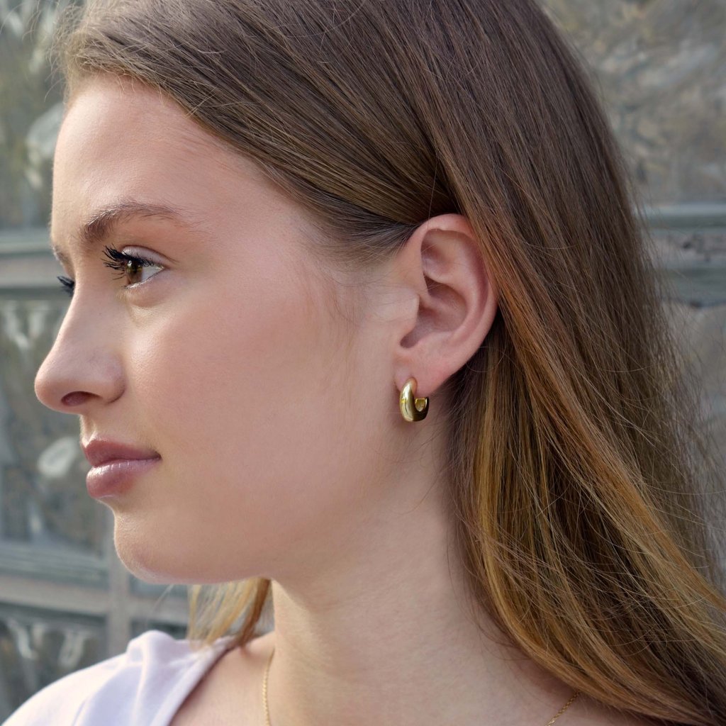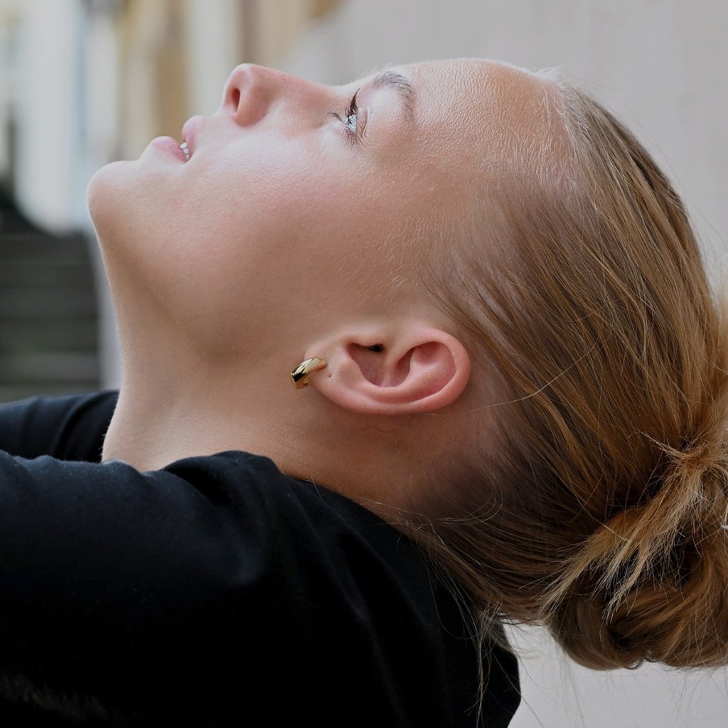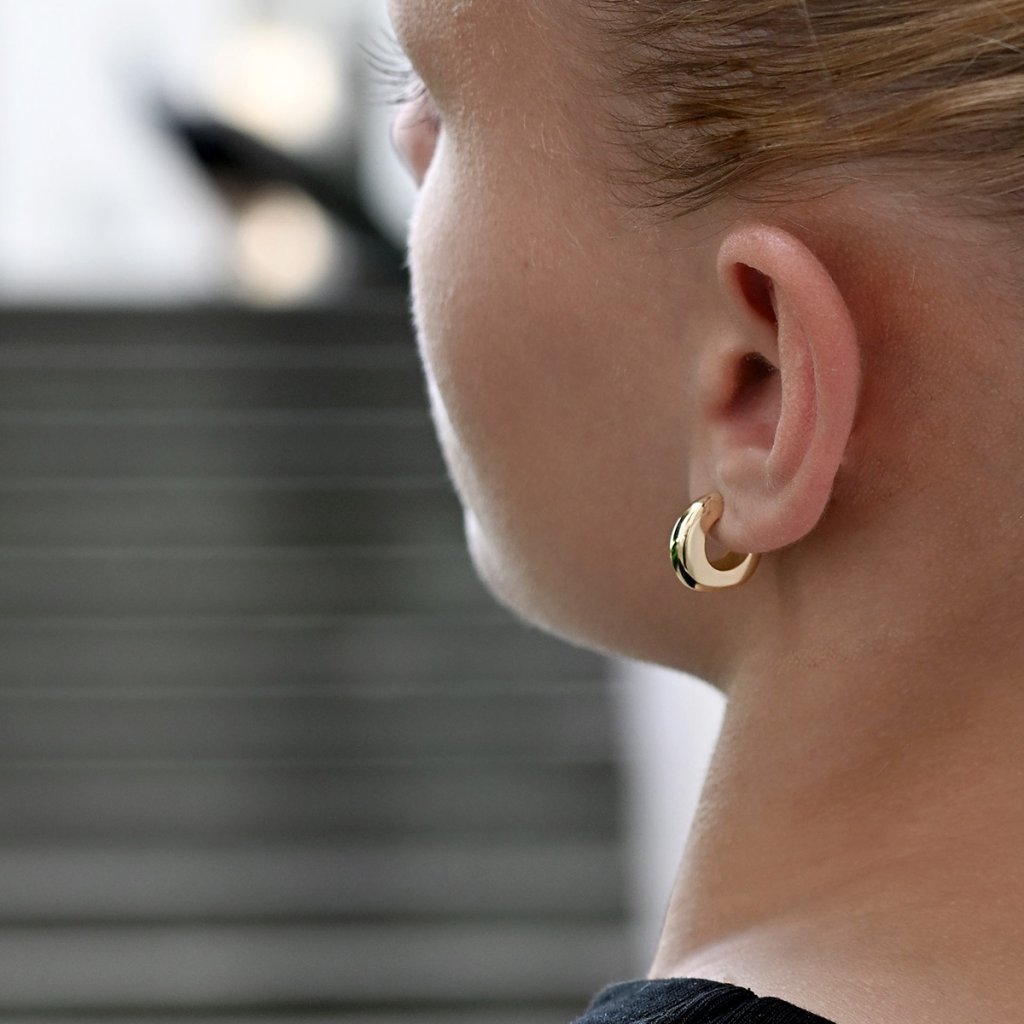 Silnejší profil kovu pôsobí výrazne a elegantne aj bez ozdôb. Vďaka zapínaniu na puzetu sa náušnice ľahko nasadzujú a pohodlne nosia po celý deň. Perfektná voľba pre ženy, ktoré ocenia čistý dizajn s charakterom.