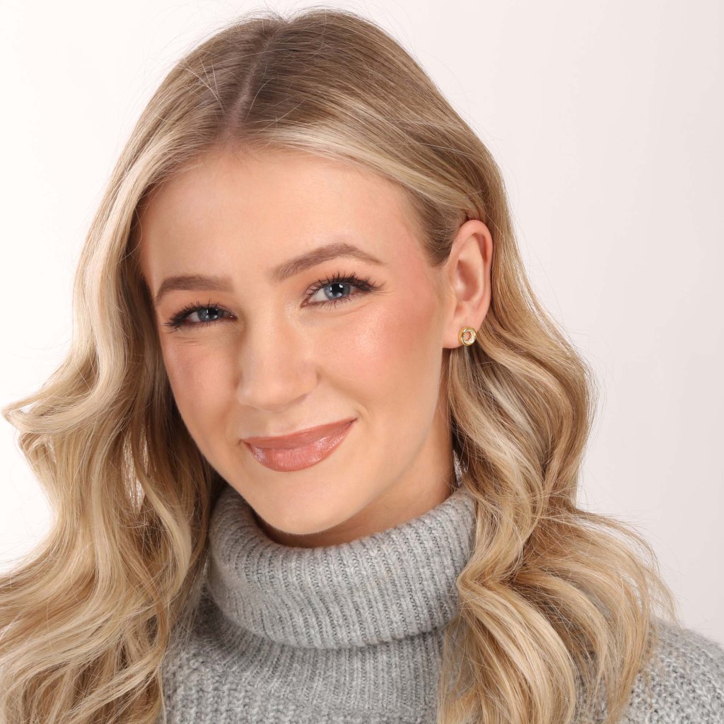 Moderné pozlátené náušnice kôstky v tvare krúžkov, ktorým okrúhle zirkóny dodávajú úžasný ligot.
