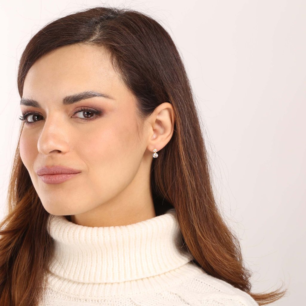Elegantné pozlátené strieborné náušnice s dvoma výraznými zirkónmi budú na Vašom uchu neprehliadnuteľné.