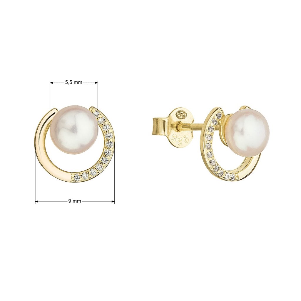 Pozlátené strieborné náušnice kôstky s bielou riečnou perlou 21067.1