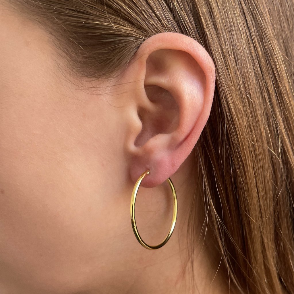 Pozlátené strieborné náušnice typu kruhy 61005 sú vyrobené zo striebra rýdzosti 925/1000. Náušnice majú priemer 35 mm a zapínanie na krúžok. Šperk 61005 neobsahuje nikel , a tak sa nemusíte obávať alergickej reakcie.