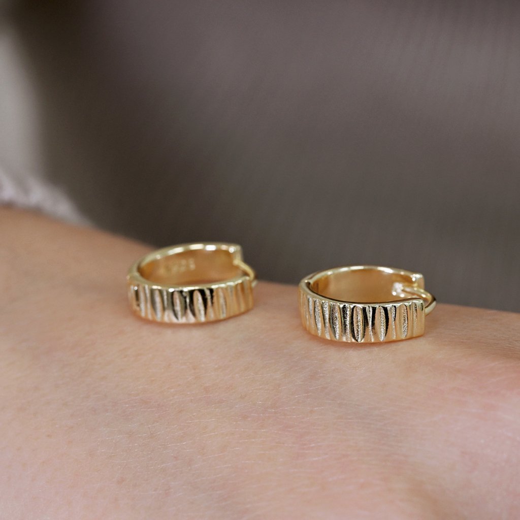 Pozlátené strieborné náušnice kruhy plastický vzor 61089