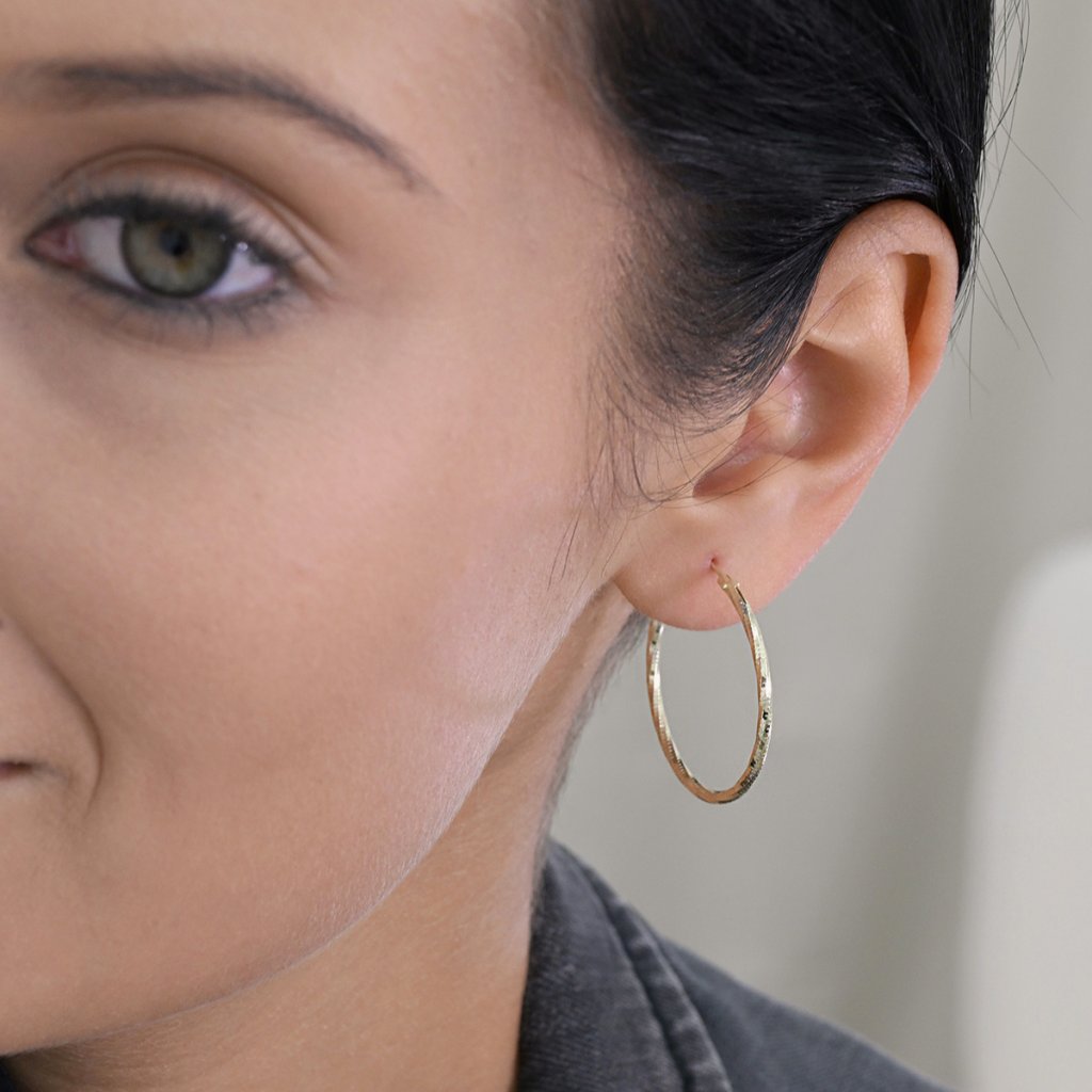 - náušnice v tvare kruhu s ozdobným prelisovaním