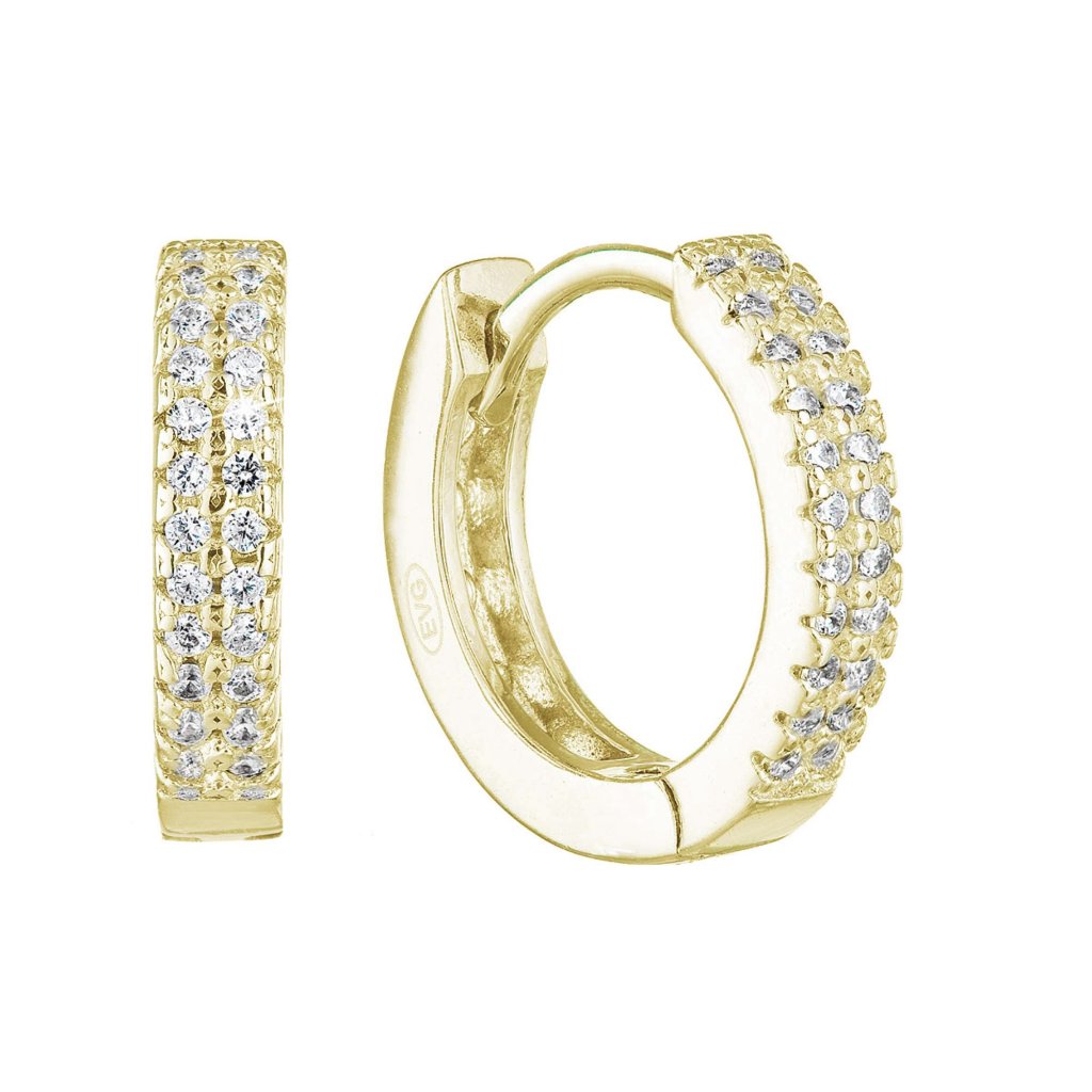 Pozlátené strieborné náušnice kruhy so zirkónmi v bielej farbe 11238.1