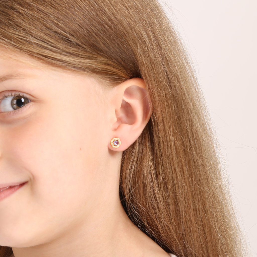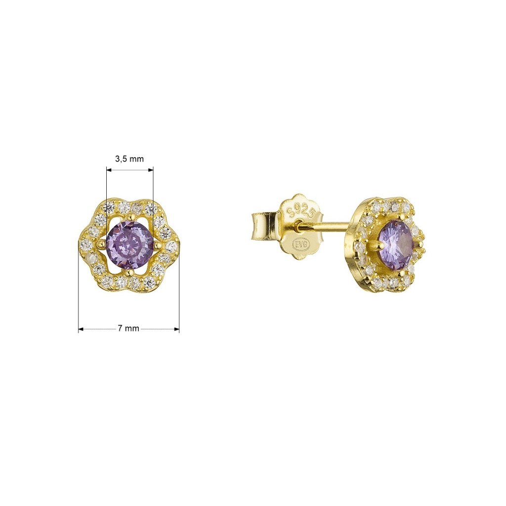 Pozlátené strieborné náušnice kvietky s fialovým zirkónom 11702.3 ametyst