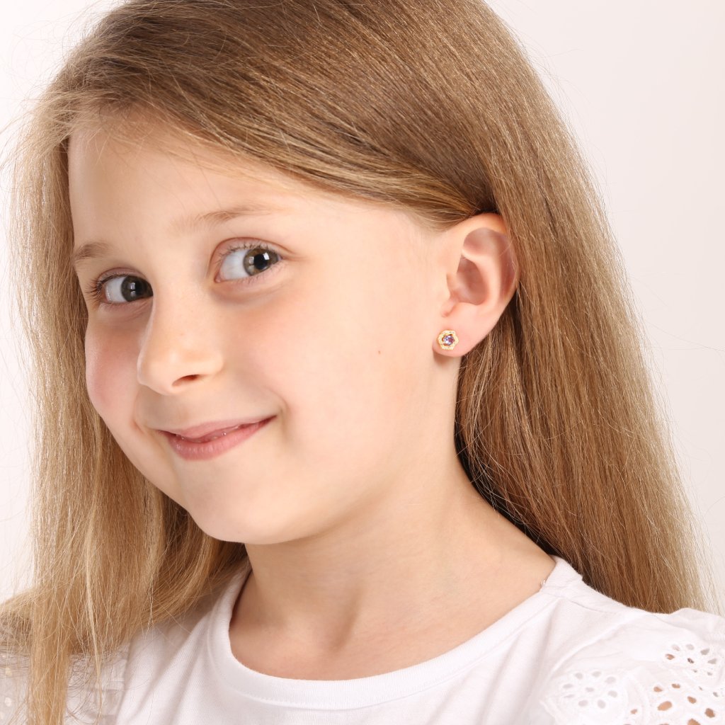 Objavte pôvabný šperk v podobe náušníc 11702.3, ktoré zaujmú svojim jemným kvetinovým dizajnom a žiarivým fialovým zirkónom uprostred. Náušnice sú vyrobené zo striebra o rýdzosti 925/1000 a pre luxusný vzhľad pozlátené teplým odtieňom zlata.