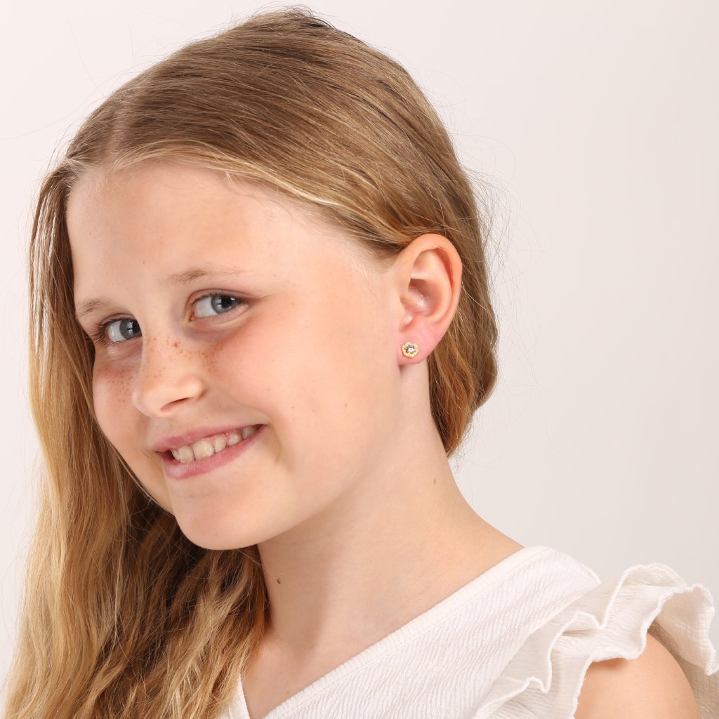 Objavte pôvabný šperk v podobe náušníc 11702.3, ktoré zaujmú svojim jemným kvetinovým dizajnom a žiarivým modrým zirkónom uprostred. Náušnice sú vyrobené zo striebra o rýdzosti 925/1000 a pre luxusný vzhľad pozlátené teplým odtieňom zlata.