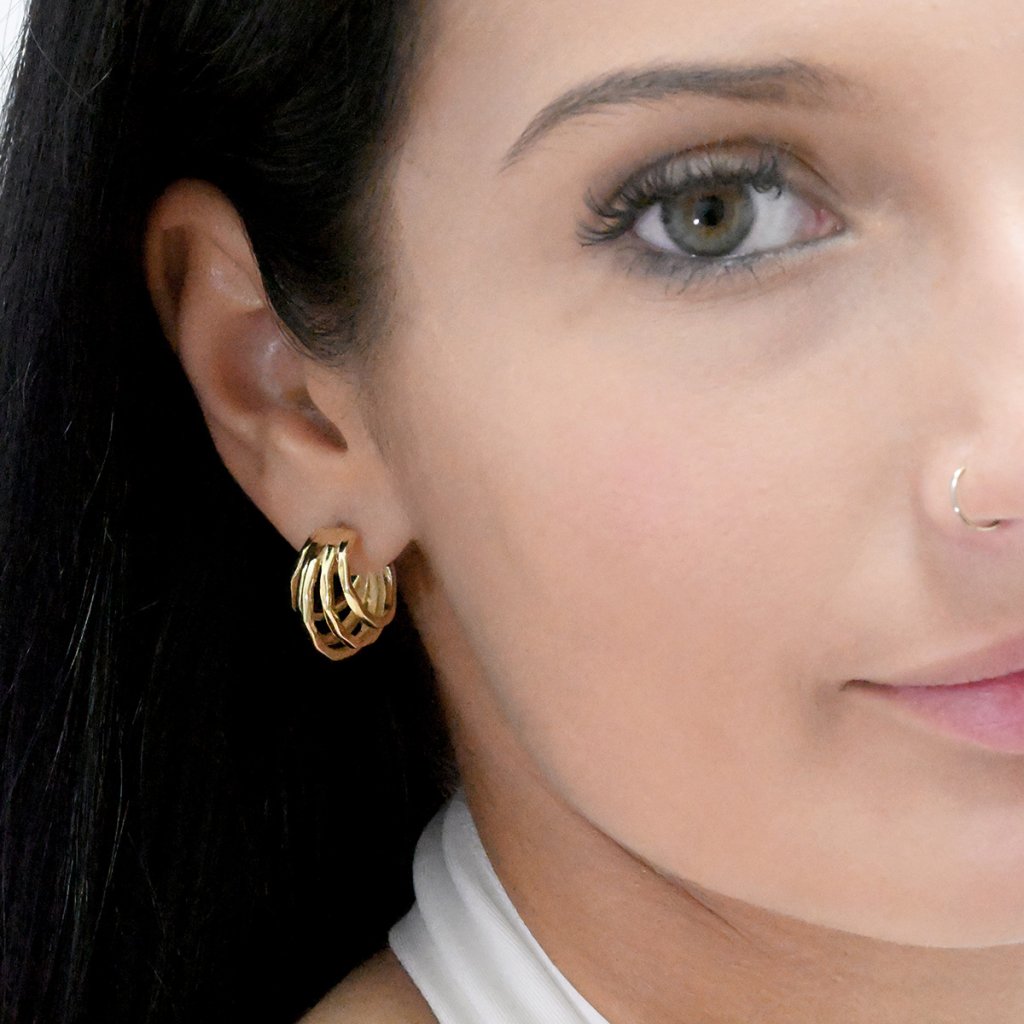 Pozlátené strieborné náušnice päť vlnitých kruhov 61081