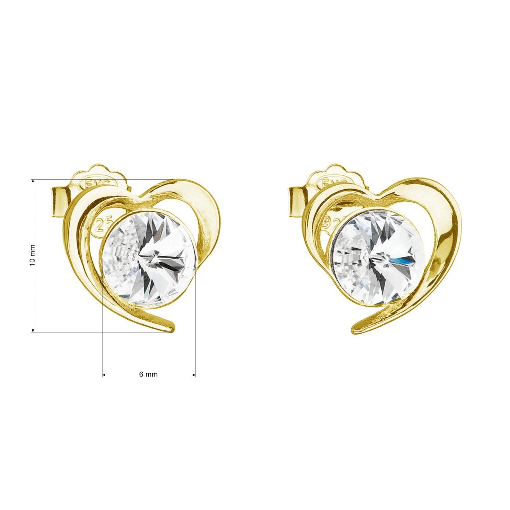 Parametre pozlátených strieborných náušníc kôstok s kryštálmi Swarovski biele srdce 31259.1