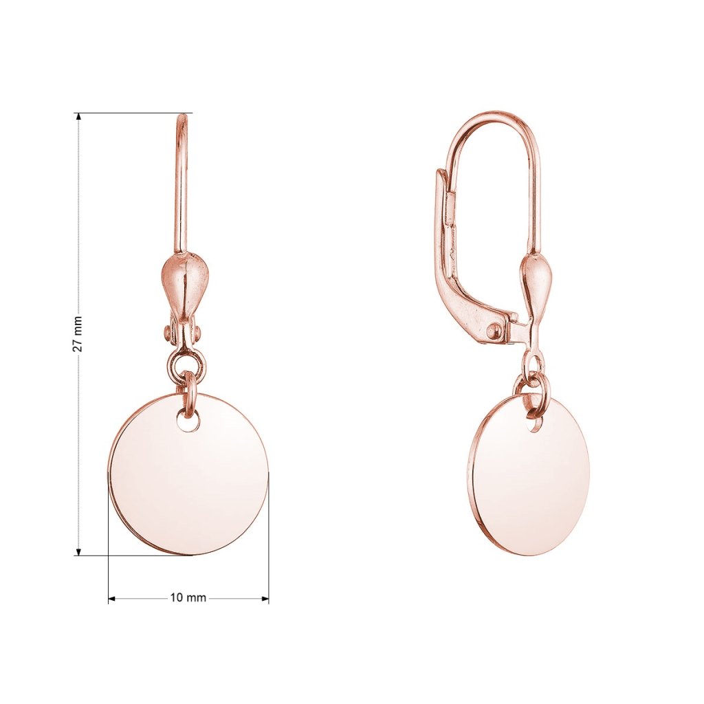 Pozlátené strieborné náušnice placky 61134 rose gold