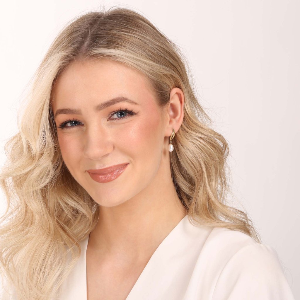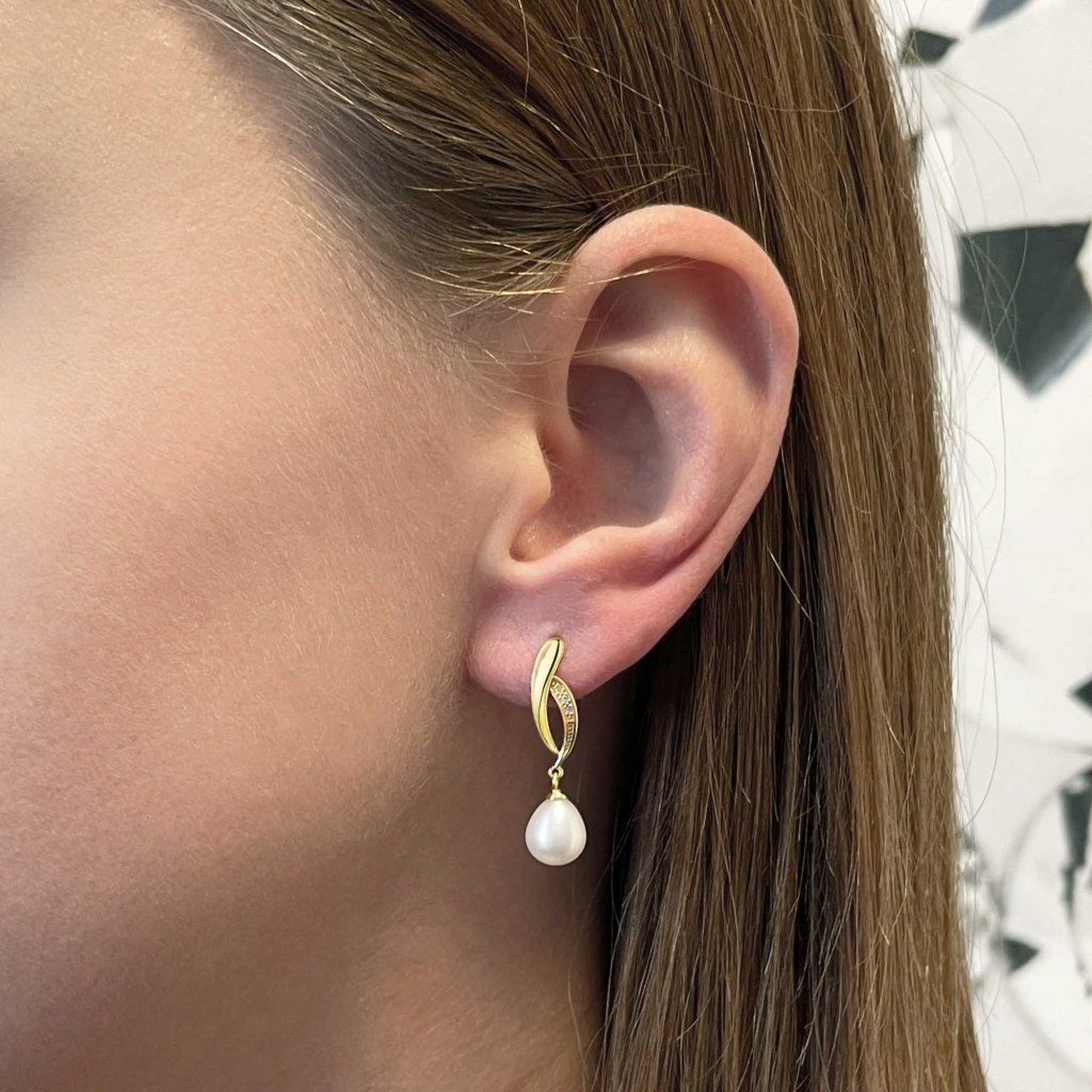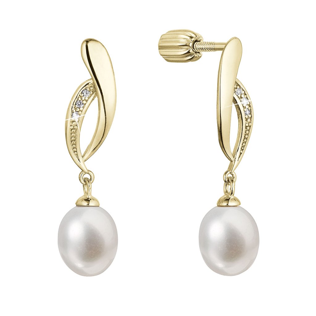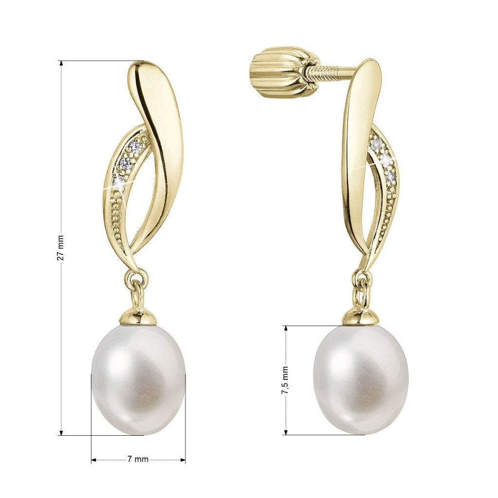 Pozlátené strieborné náušnice s riečnou perlou a zirkónmi biela 21103.1B