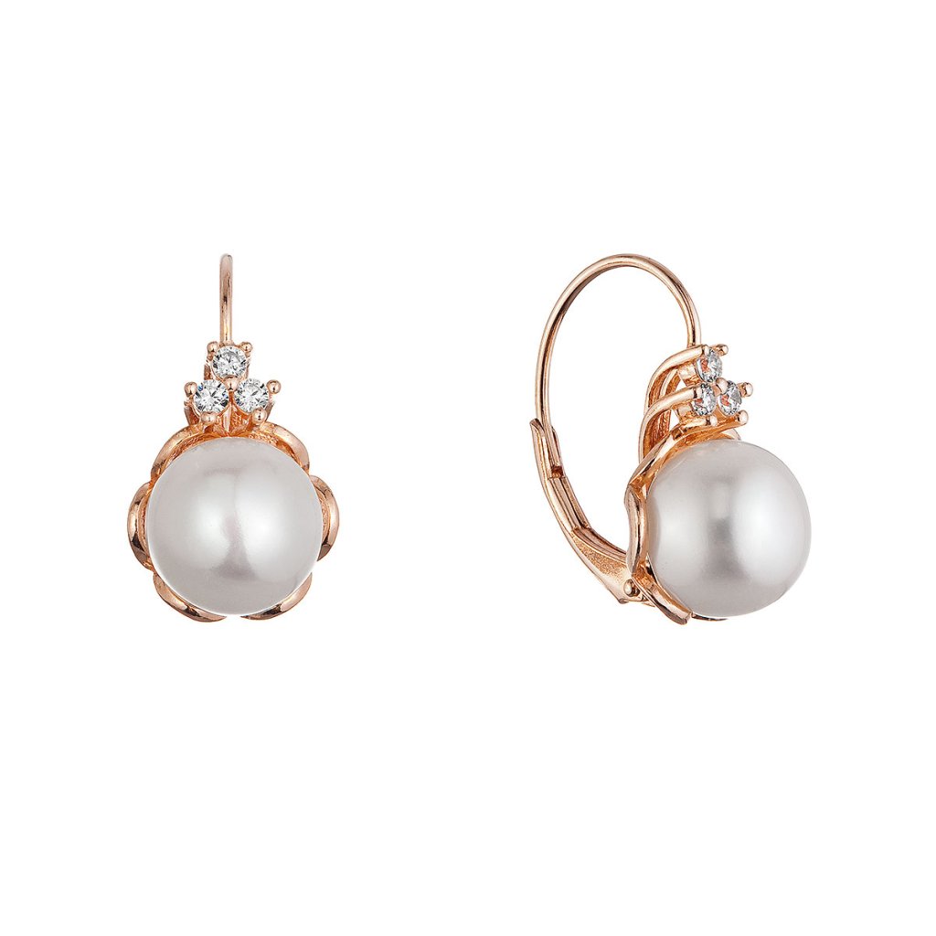 Perlové náušnice 21108.1 sú vyrobené z ružovo pozláteného striebra o rýdzosti 925/1000 a sú zdobené riečnou perlou kvality AA v bielej farbe. Okrem perál šperk zdobia aj malé tri trblietavé zirkóny , ktoré sú nad perlou a dodávajú šperku nádych luxusu.
