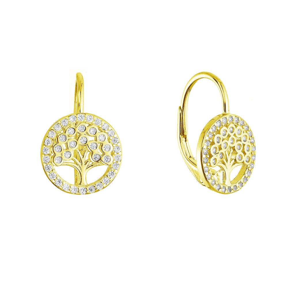 Pozlátené strieborné náušnice strom života so zirkónmi 11713.1
