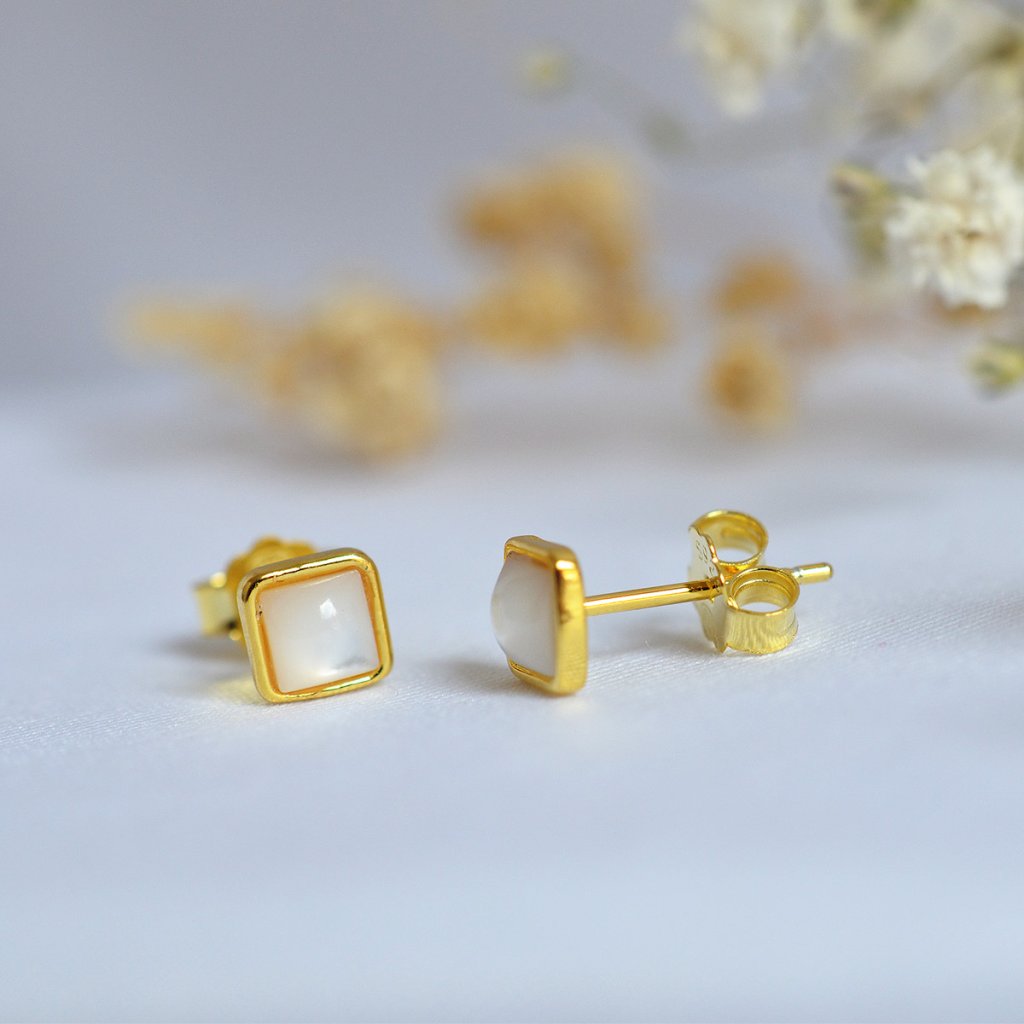 Pozlátené strieborné náušnice štvorčeky s perleťou 11704.1