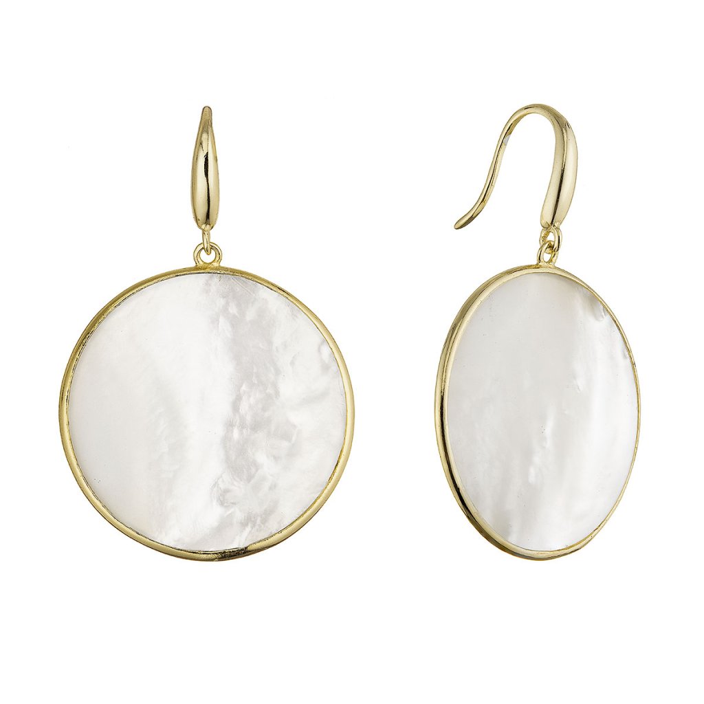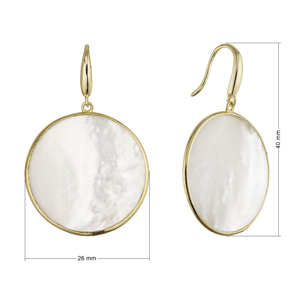 Pozlátené strieborné náušnice väčšie kolieska s perleťou 11796.1