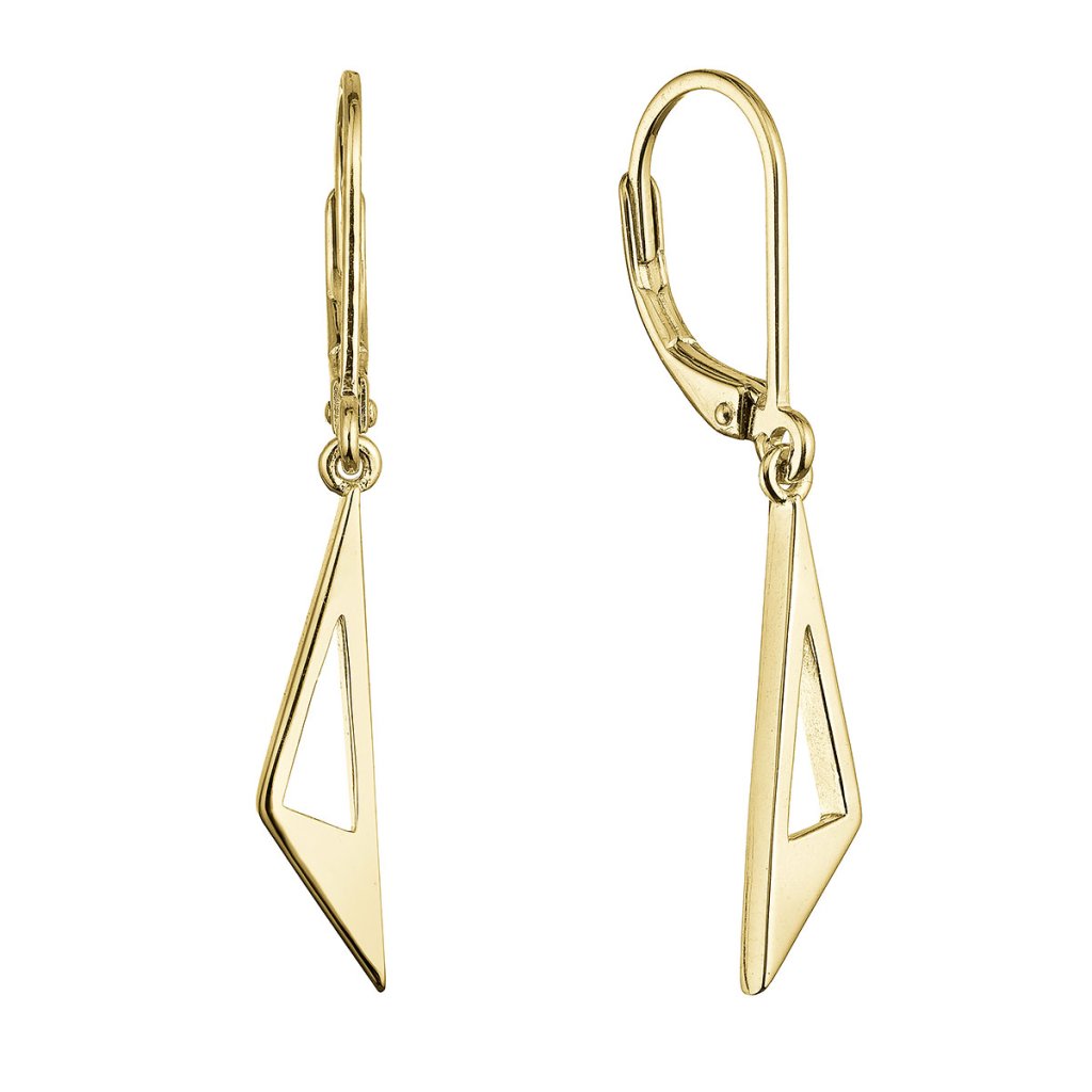 Minimalistické visiace náušnice v modernom geometrickom tvare. Tieto jednoduché, ale zaujímavé náušnice skvele doplnia váš outfit.Náušnice sú vyrobené z pozláteného striebra o rýdzosti 925/1000. Výrobok neobsahuje prídavok niklu, a tak ho môžu nosiť aj ľudia náchylní na alergické reakcie. Náušnice majú zapínanie na klapku , ktorá ich ochráni proti nechcenej strate.