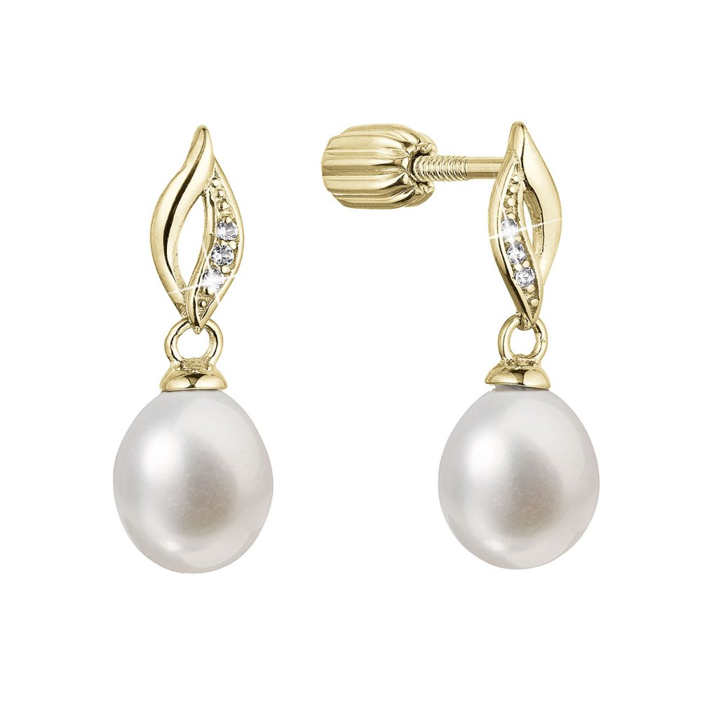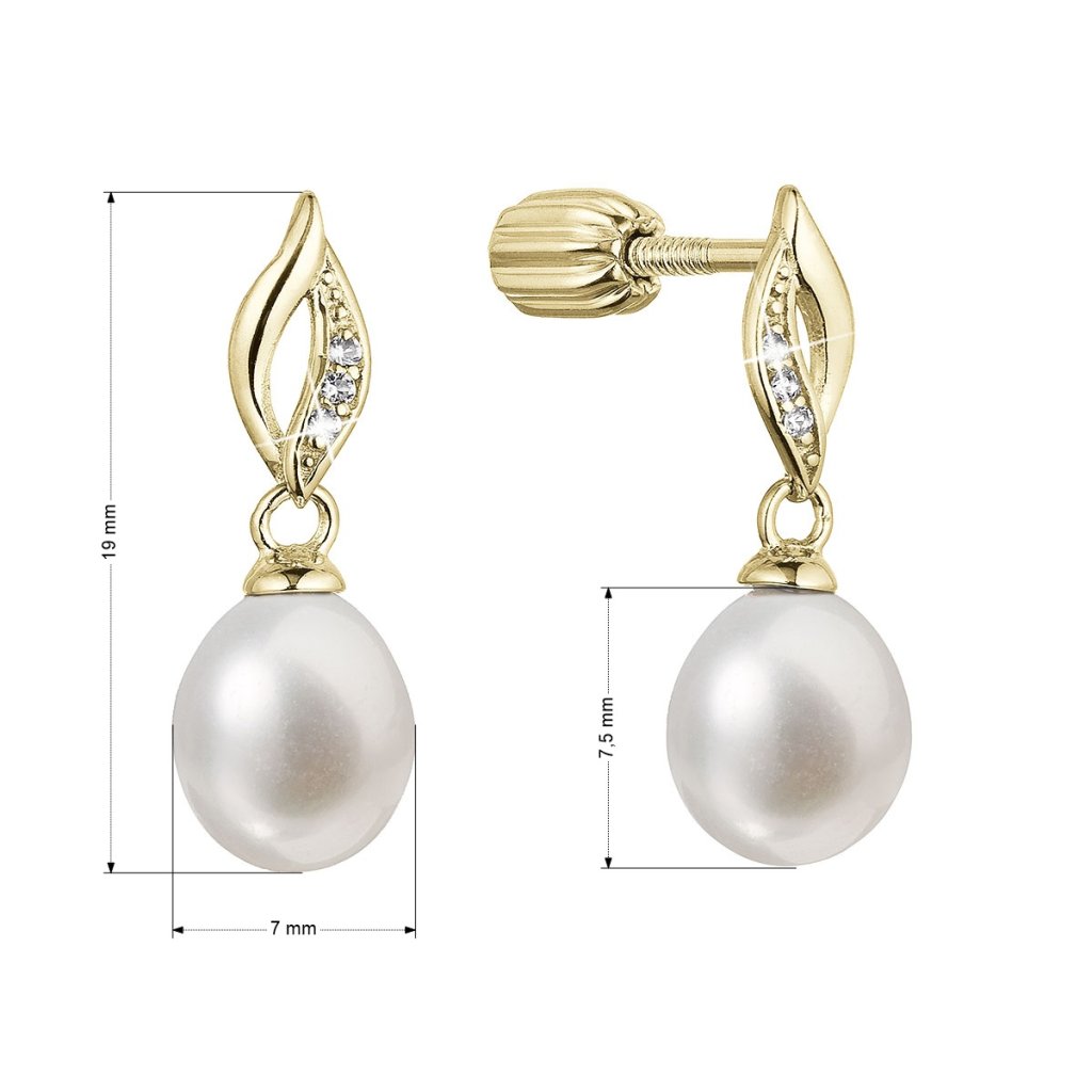 Pozlátené strieborné náušnice visiace s riečnou perlou a zirkónmi biela 21104.1B