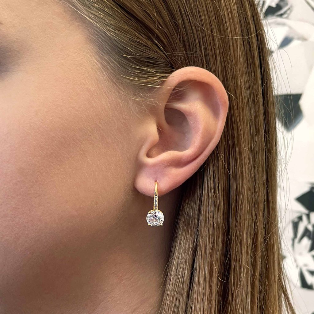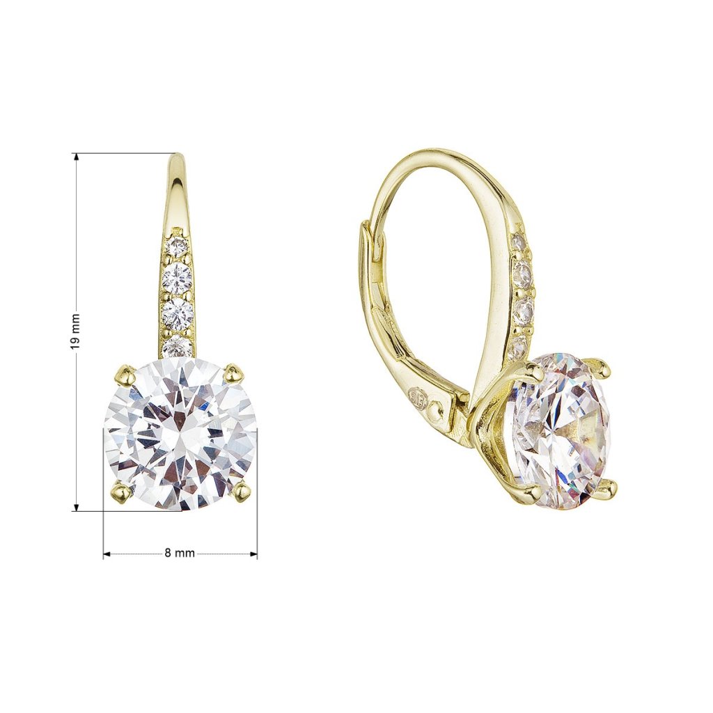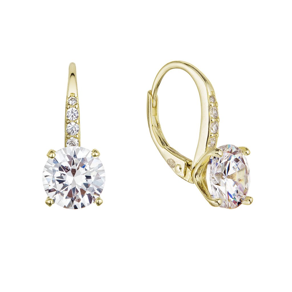 Pozlátené strieborné náušnice v ktorých veľmi elegentne vynikajú biele zirkóny.Náušnice vyrobené z pozláteného striebra o rýdzosti 925/1000 zaujmú predovšetkým žiarivými zirkónmi. Šperk neobsahuje prídavok niklu, a tak ho môžu nosiť aj ľudia náchylní na alergické reakcie. Náušnice majú zapínanie na klapku, ktorá ich ochráni proti nechcenej strate.