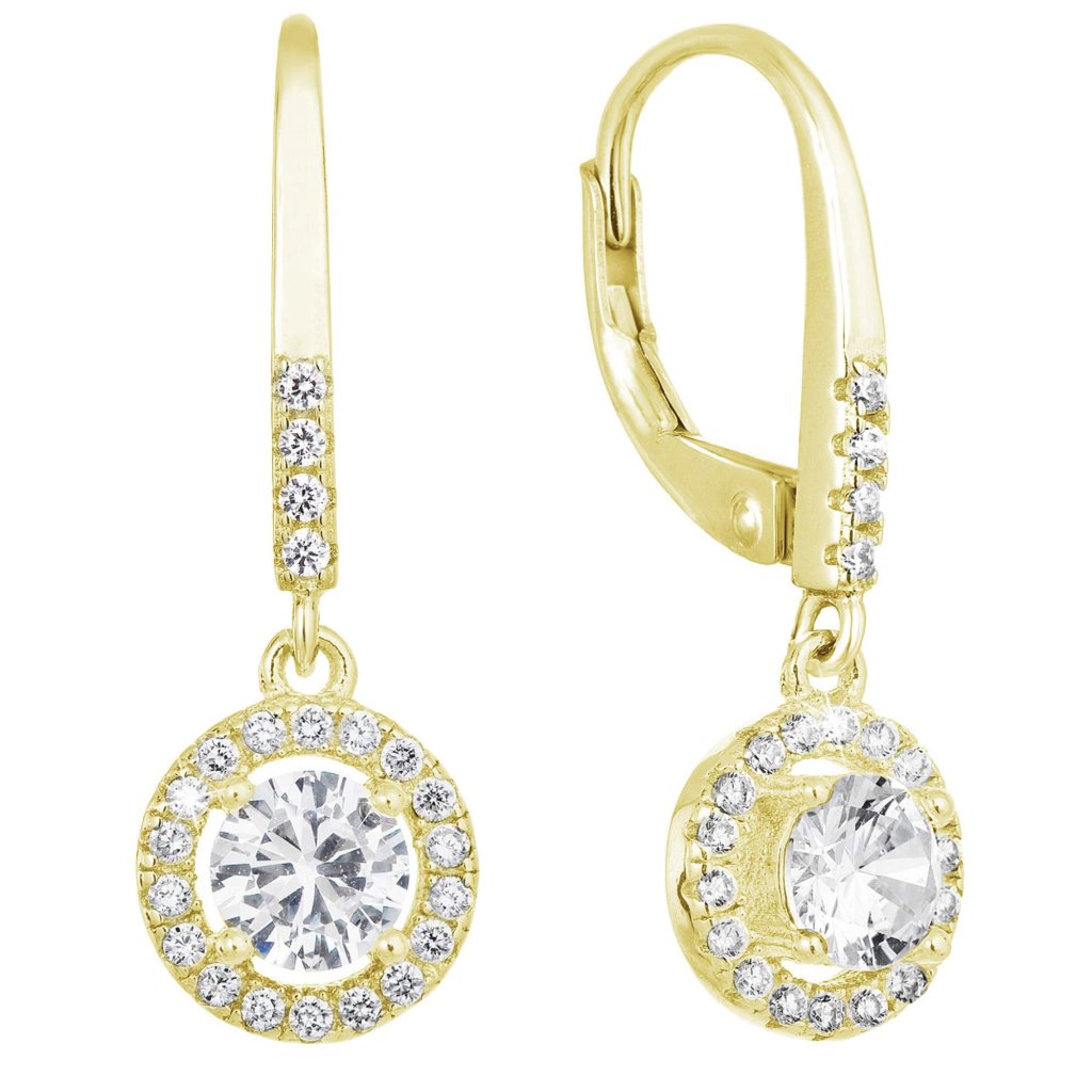 Pozlátené strieborné náušnice visiace so zirkónmi biele okrúhle 11300.1