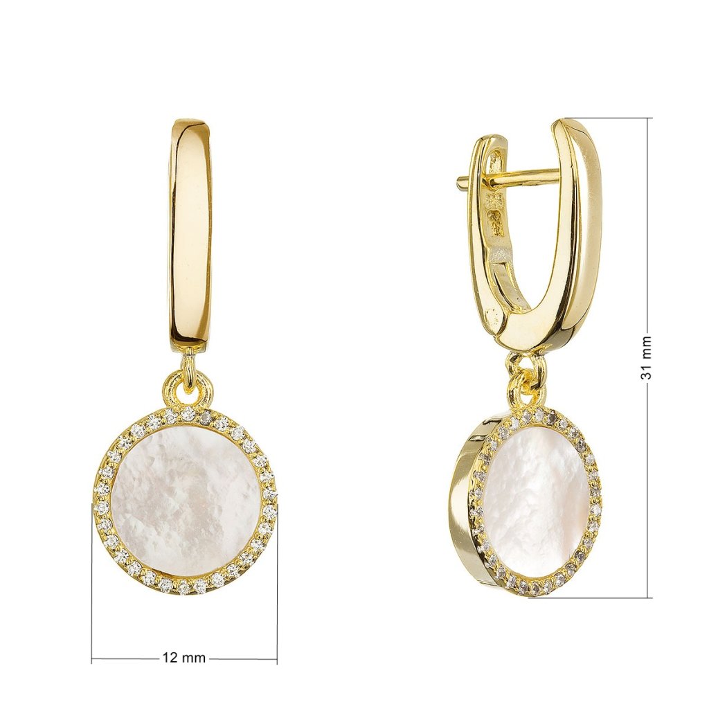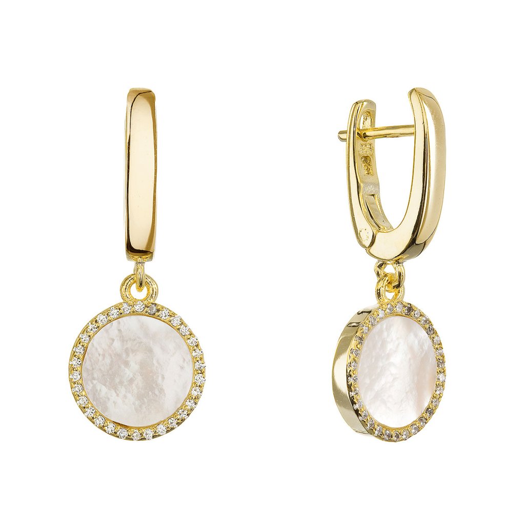 Pozlátené visiace náušnice s bielou perleťou 11734.1