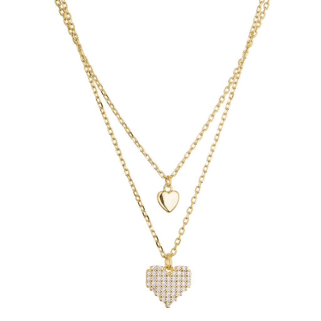 Pozlátený dvojradový náhrdelník srdiečka 12153.1