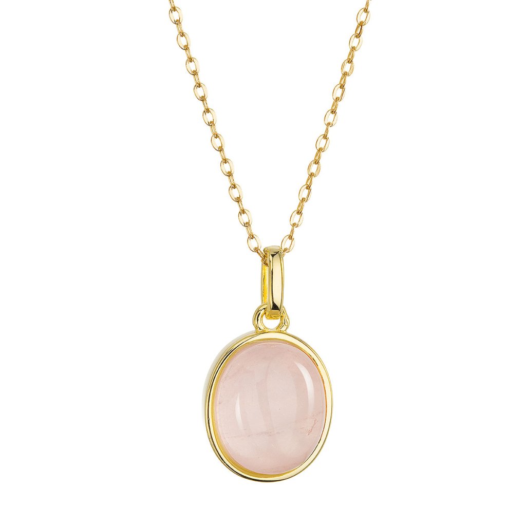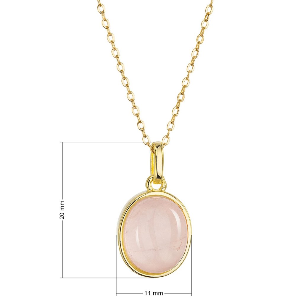 Náhrdelník s príveskom je vytvorený zo striebra rýdzosti 925/1000 s pozlátenou úpravou, ktorá dodáva šperku teplý a luxusný nádych. Precízne zasadený prírodný ruženín v nežne ružovej farbe zapĺňa oválny prívesok a pripomína jemnosť a krehkosť ľudského srdca. Pozlátený povrch nežne obklopuje kameň a vytvára harmonický celok, ktorý priťahuje pohľady svojou jemnosťou a eleganciou.