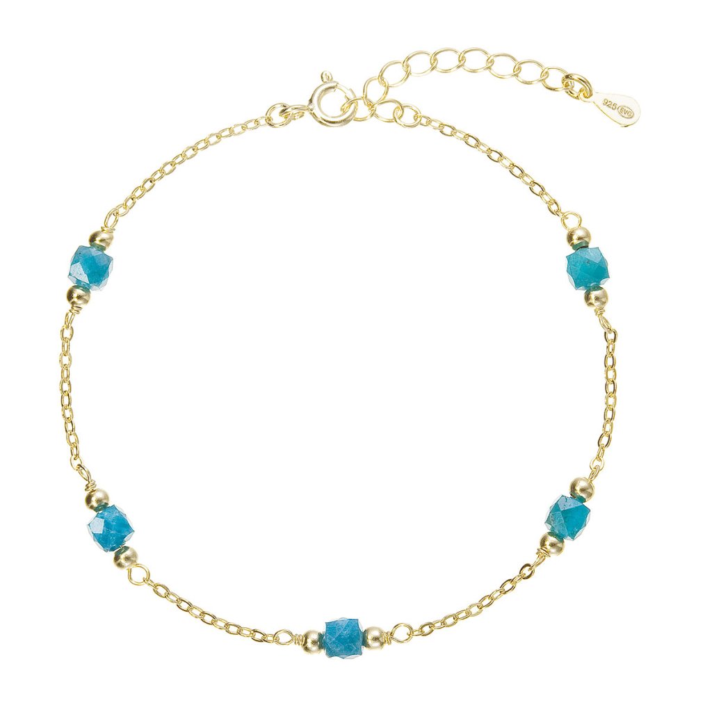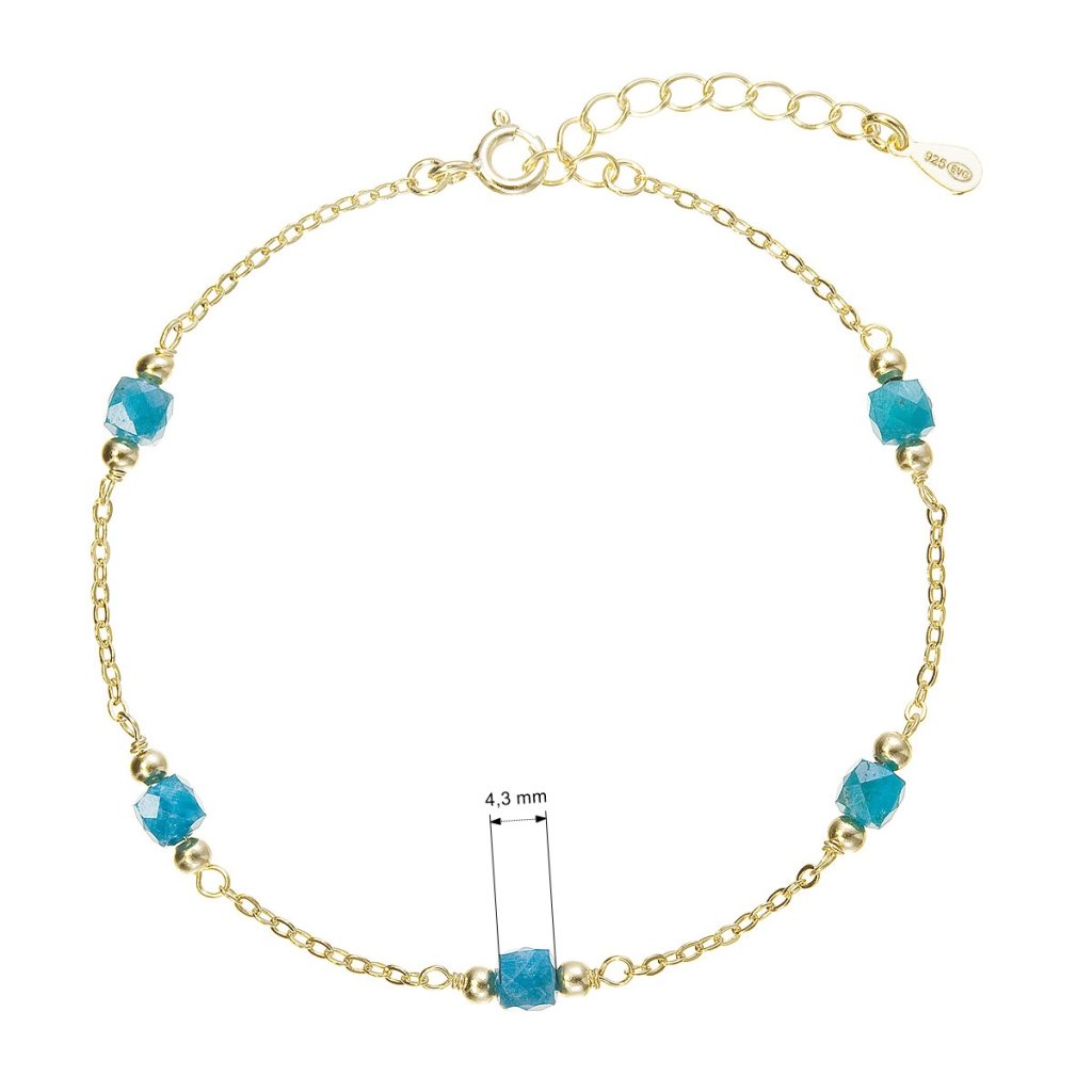 Jemný pozlátený náramok s drobnými fazetovanými apatitmi v nádhernej výraznej modrej farbe.
