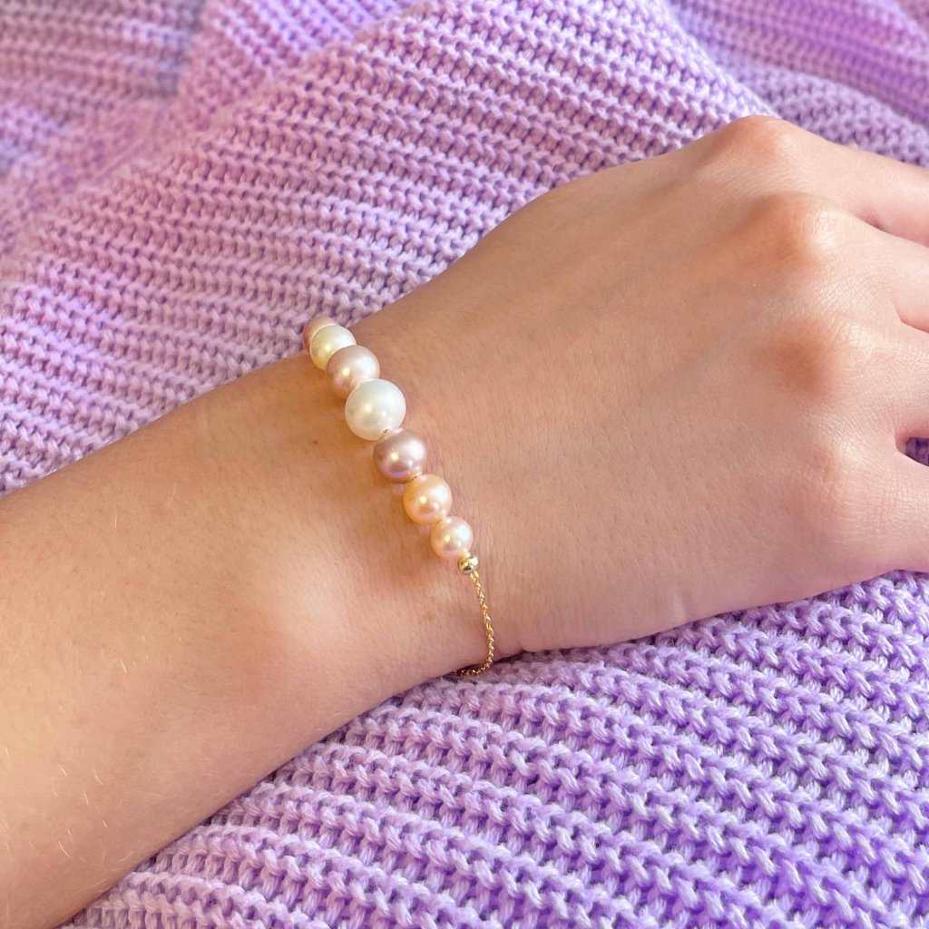 Pozlátený náramok s farebnými riečnymi perlami 23024.3 multi