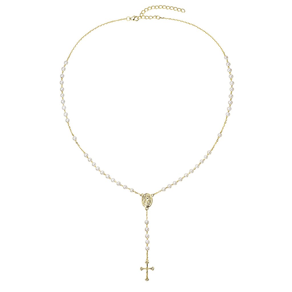 Pozlátený ruženec s bielymi riečnymi perlami 22062.1