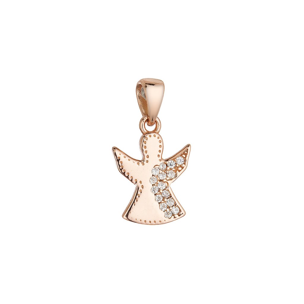 Pozlátený ružový prívesok anjel so zirkónmi 14049.1