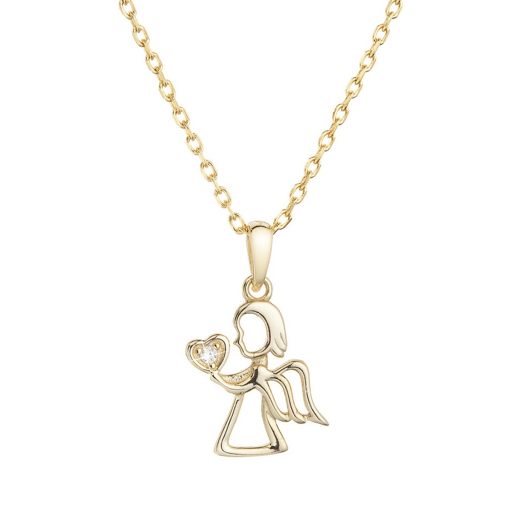 Pozlátený strieborný náhrdelník anjel so zirkónom v srdiečku 12073.1