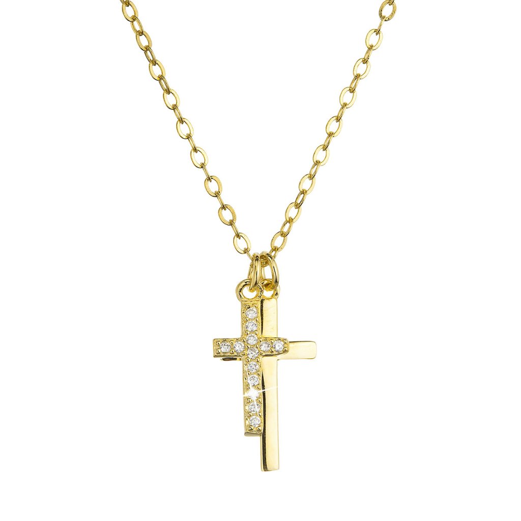 Zaujmite jedinečným originálnym náhrdelníkom, ktorý nádherne zvýrazní váš dekolt!Pozlátený náhrdelník 12059.1 v dĺžke 45 cm je zložený z retiazky a dvoch krížikov , z ktorej jeden je bohato ozdobený zirkónmi v bielej farbe. Na výrobu náhrdelníka bolo použité pozlátené striebro rýdzosti 925/1000. Náhrdelník je vhodný aj pre alergikov, neobsahuje totiž nikel.