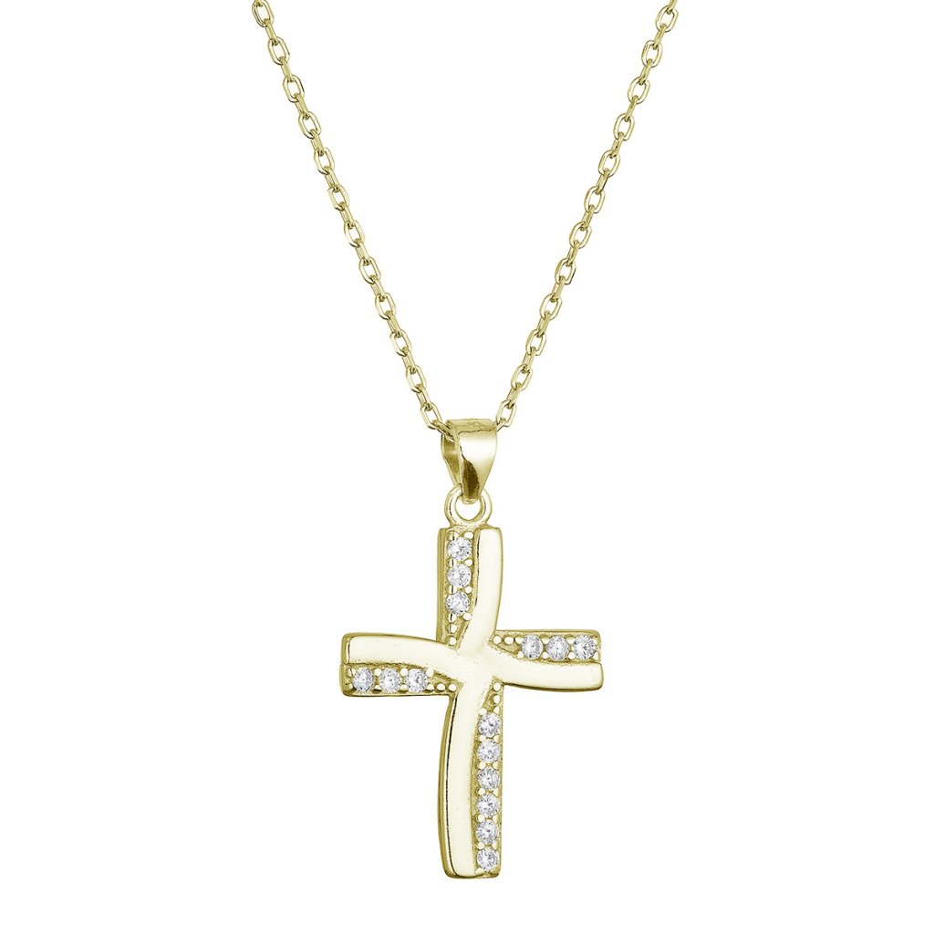 Pozlátený strieborný náhrdelník kríž so zirkónmi 12135.1 crystal