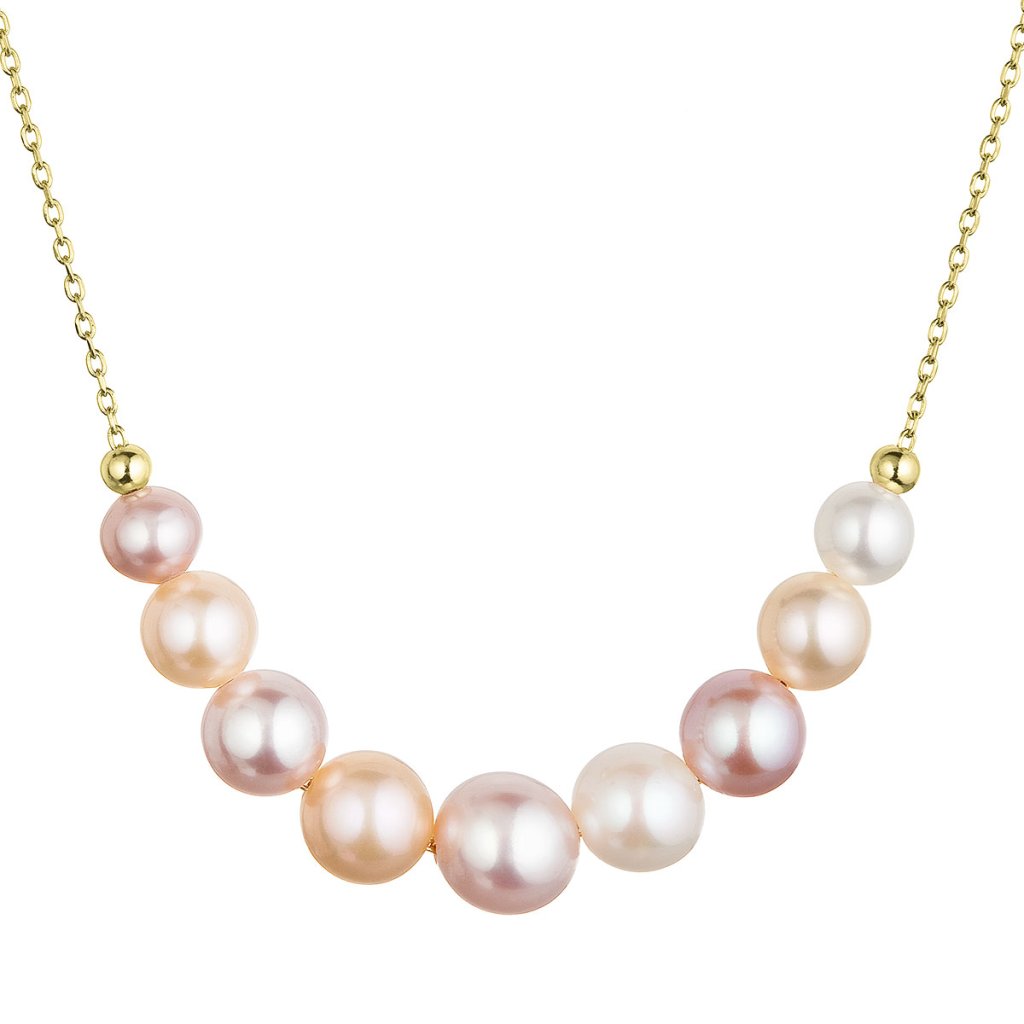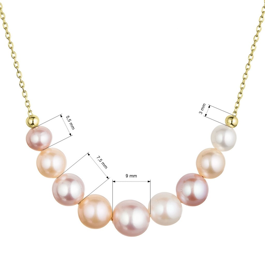 Pozlátený strieborný náhrdelník s 9 riečnou perlami na retiazke 22046.3 multi