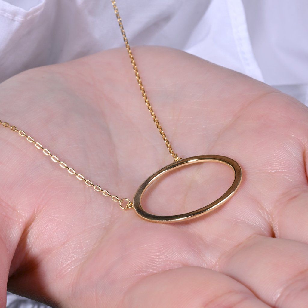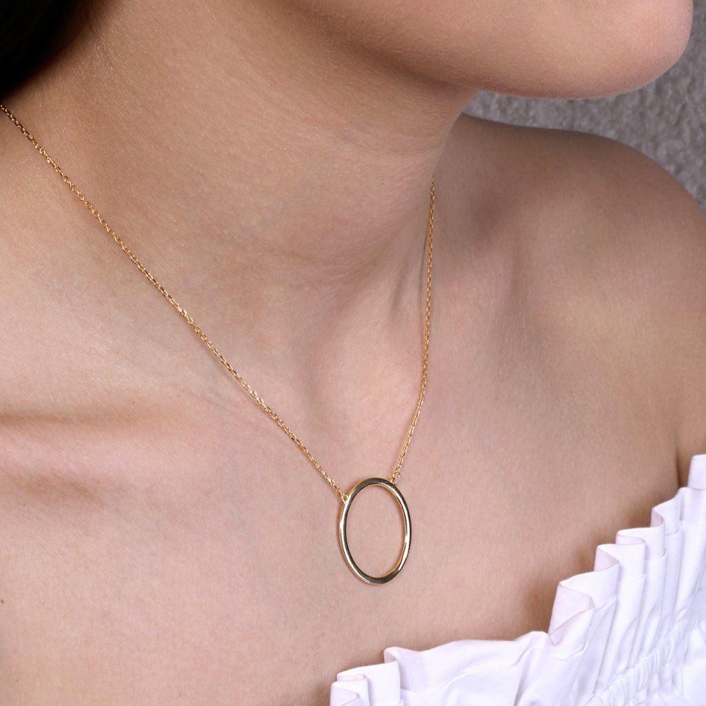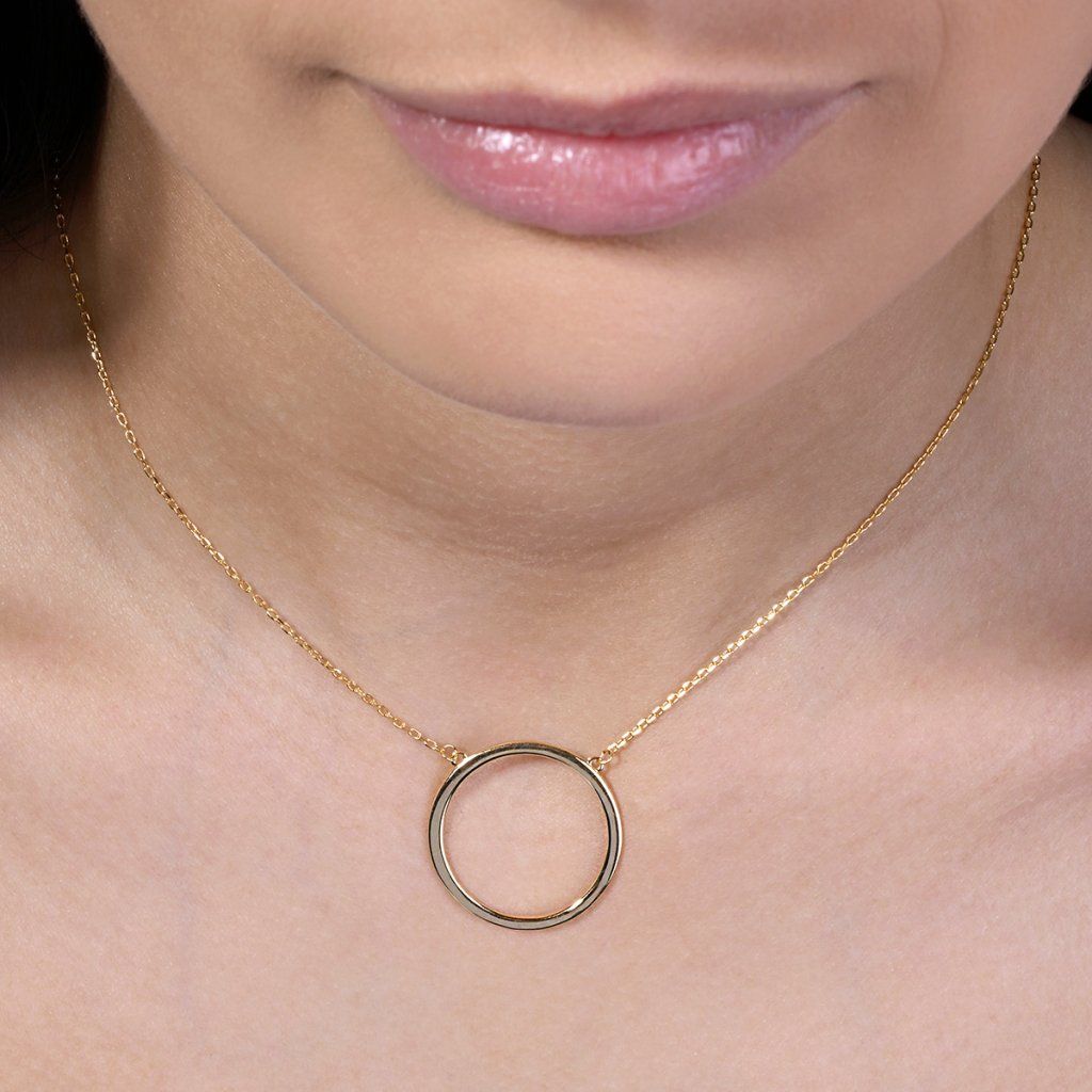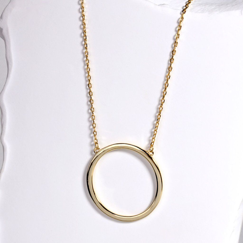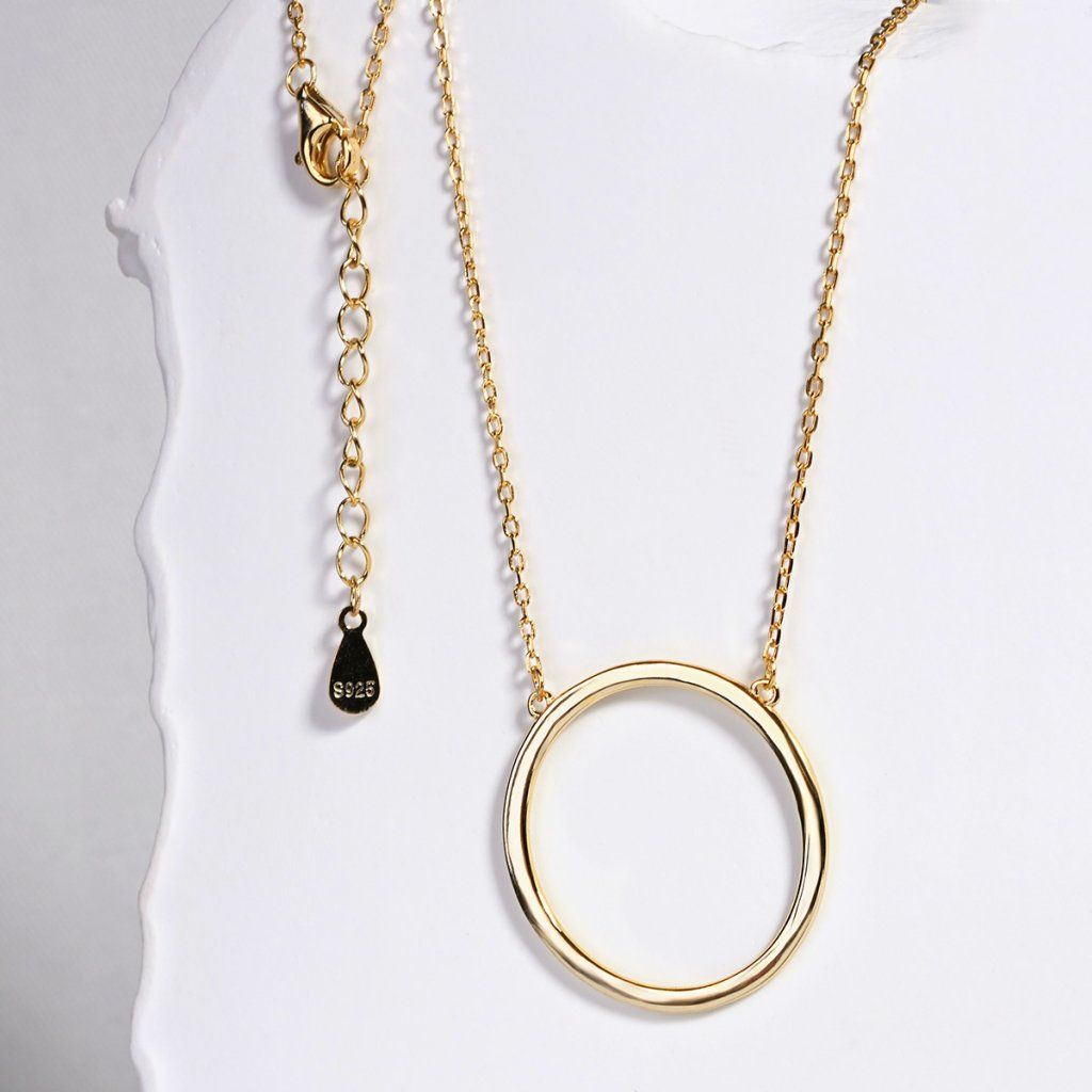 Vyžarujte sebavedomú eleganciu s týmto strieborným náhrdelníkom. Veľkorysý kruhový prívesok okamžite upúta pozornosť svojim jednoduchým, ale veľmi efektným designom. Jeho čisté línie vytvára nadčasový a univerzálny doplnok, ktorý skvele doplní ležérne aj formálnejšie outfity.Náhrdelník vyrobený zo striebra o rýdzosti 925/1000 a je pozlátený , čo mu dodáva luxusný vzhľad.