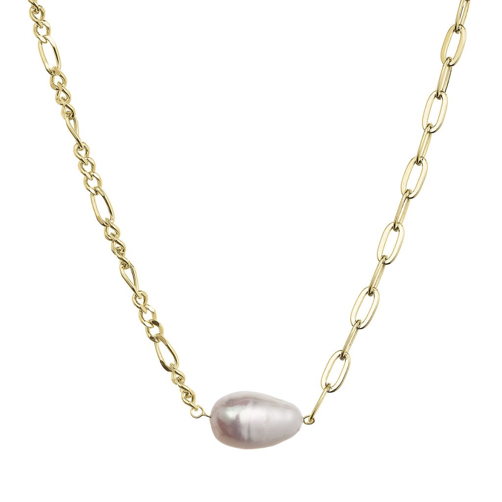 Pozlátený strieborný náhrdelník s riečnou oválnou perlou 22049.1