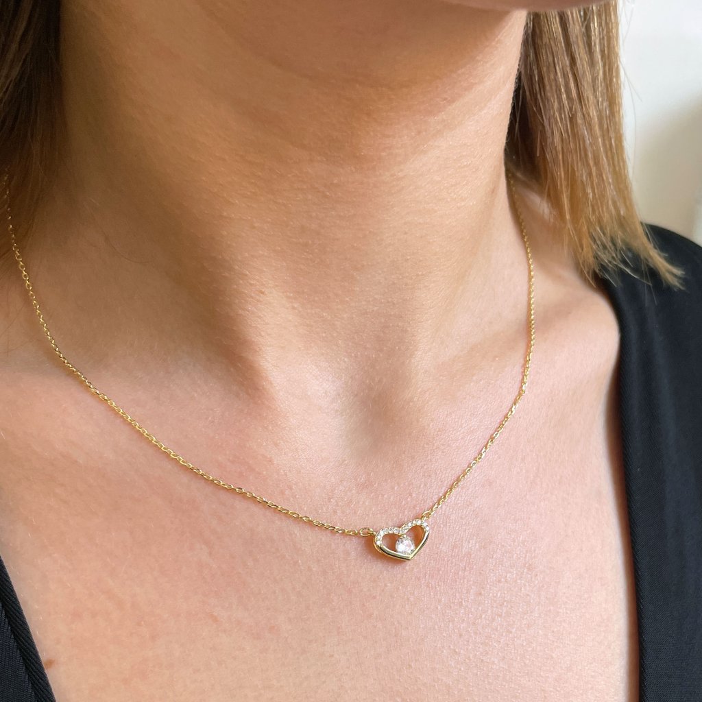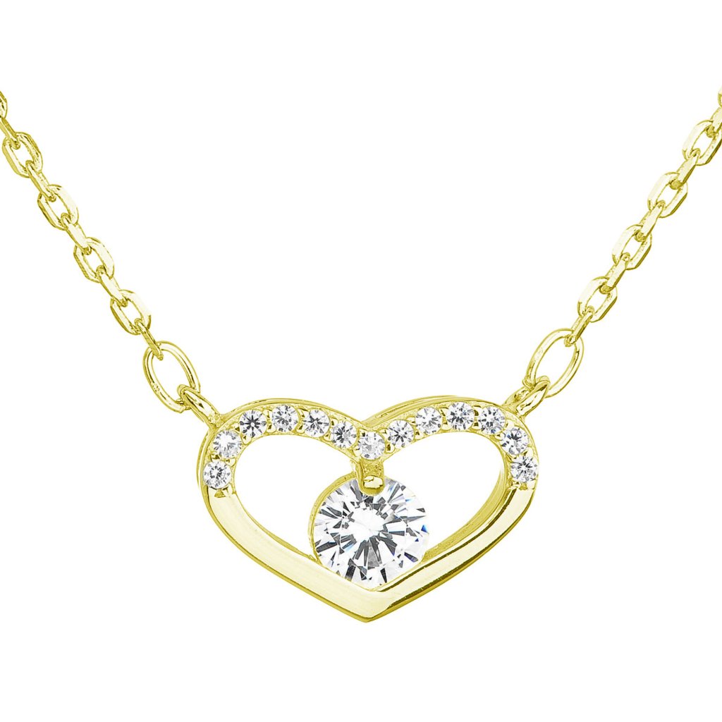 Pozlátený strieborný náhrdelník so zirkónom biele srdce 12008.1