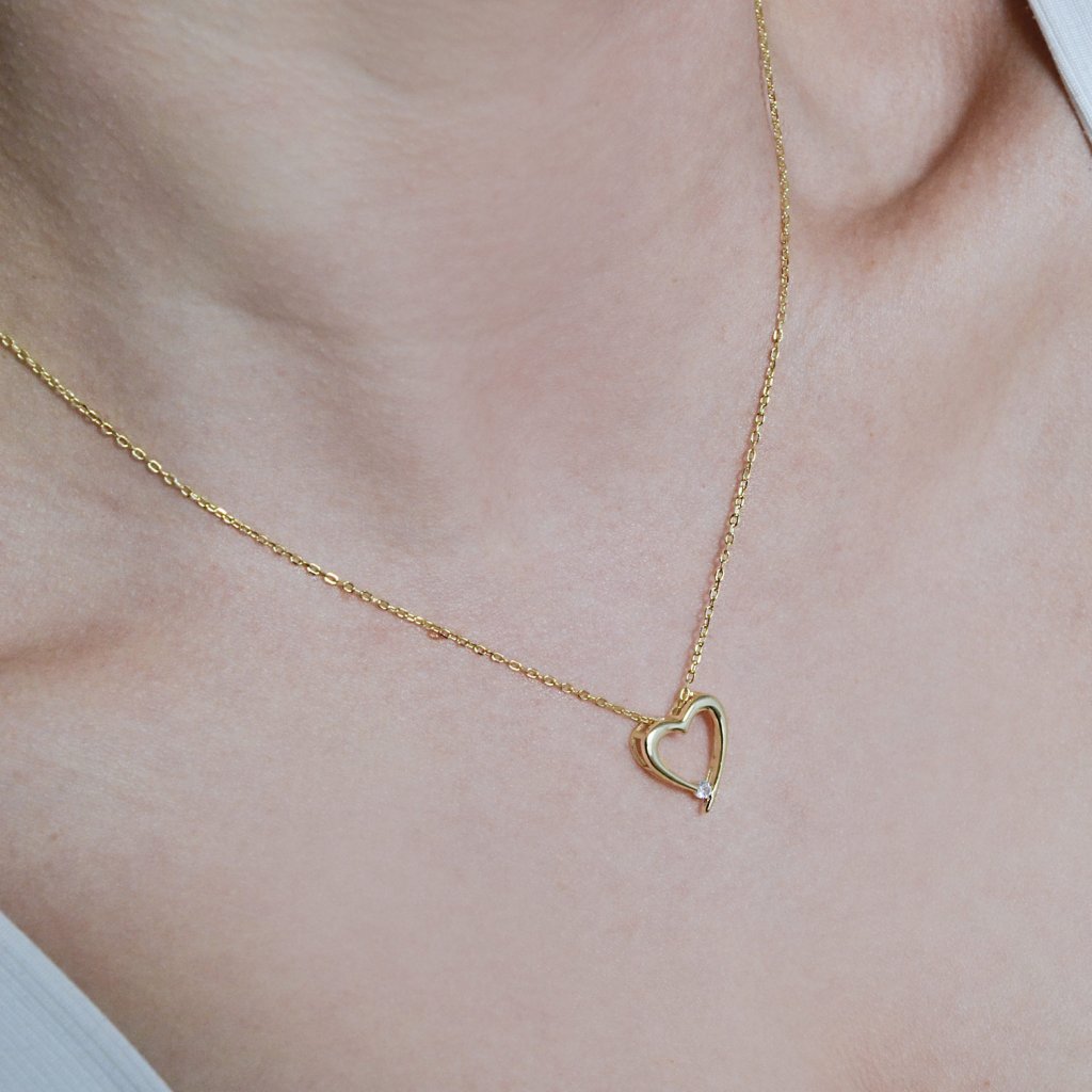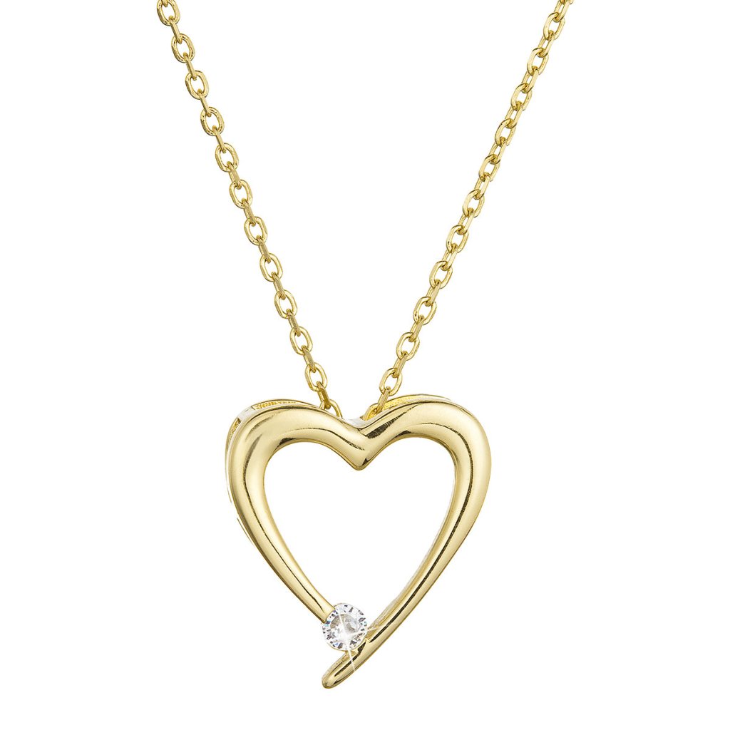 Pozlátený strieborný náhrdelník srdca s jedným zirkónikom 12053.1