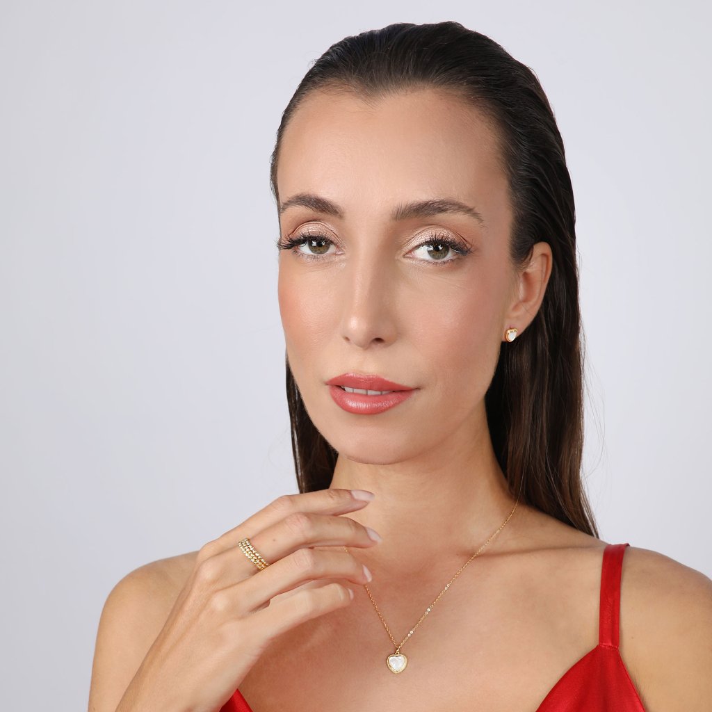 Pozlátený strieborný náhrdelník srdca s perleťovým zirkónom 12058.1
