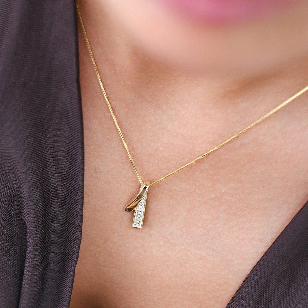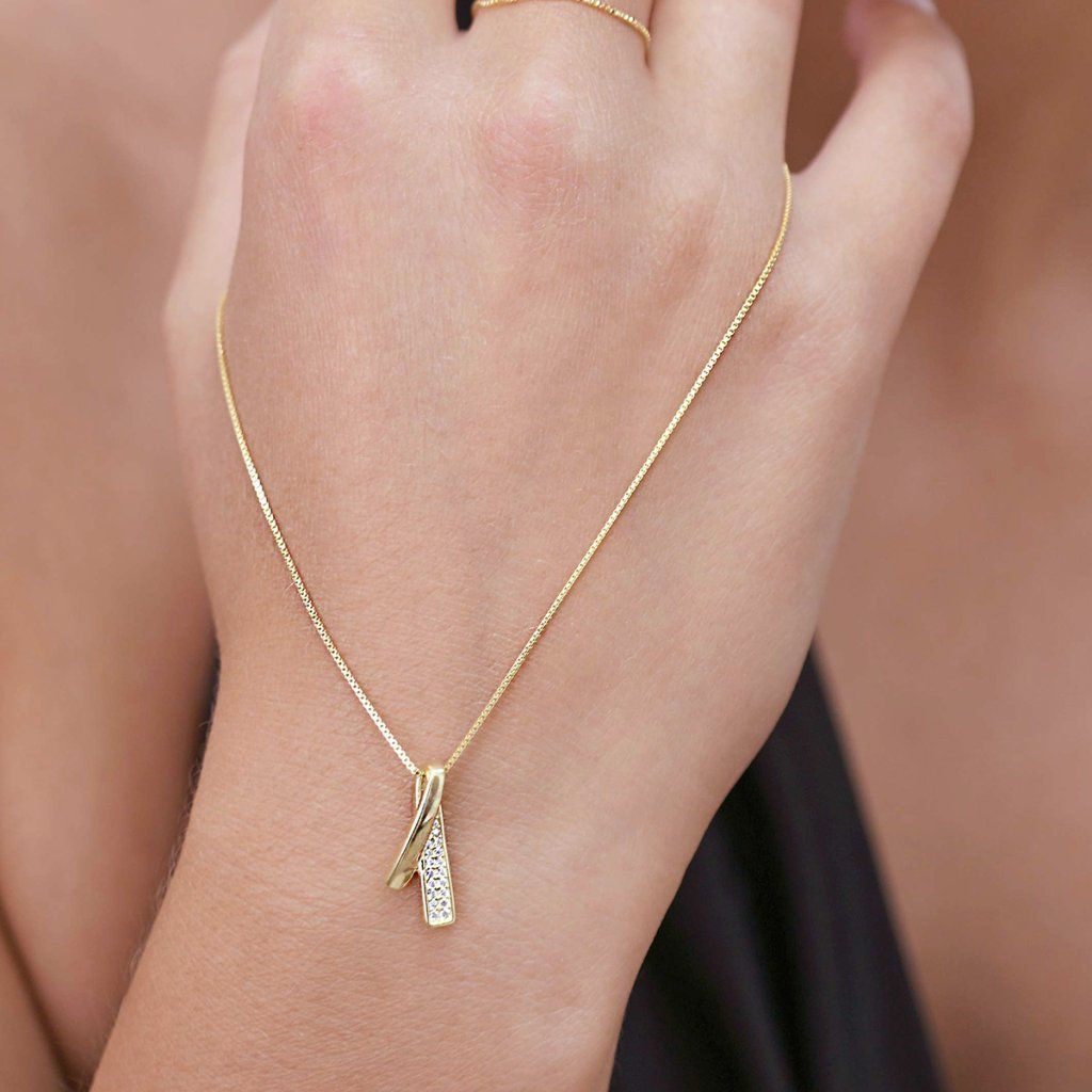 Pozlátený strieborný náhrdelník stuha so zirkónmi 12054.1