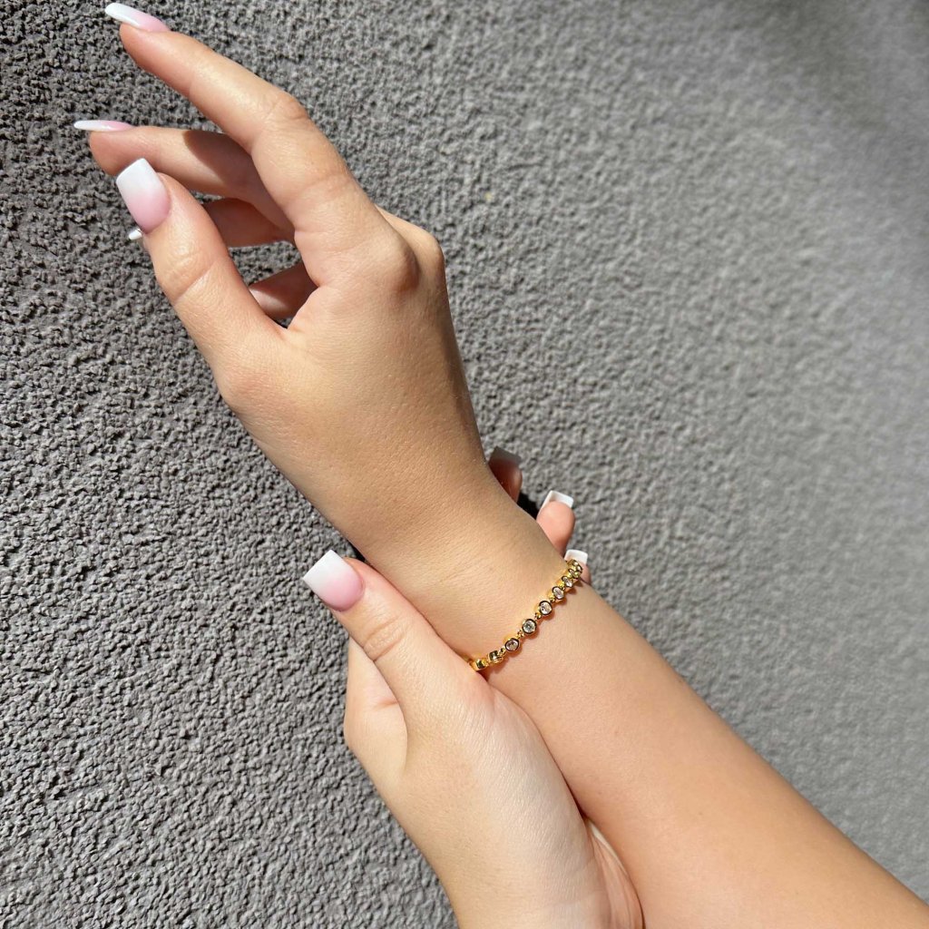 Pozlátený strieborný náramok retiazka osadený okrúhlymi zirkónmi biely 13027.1 crystal