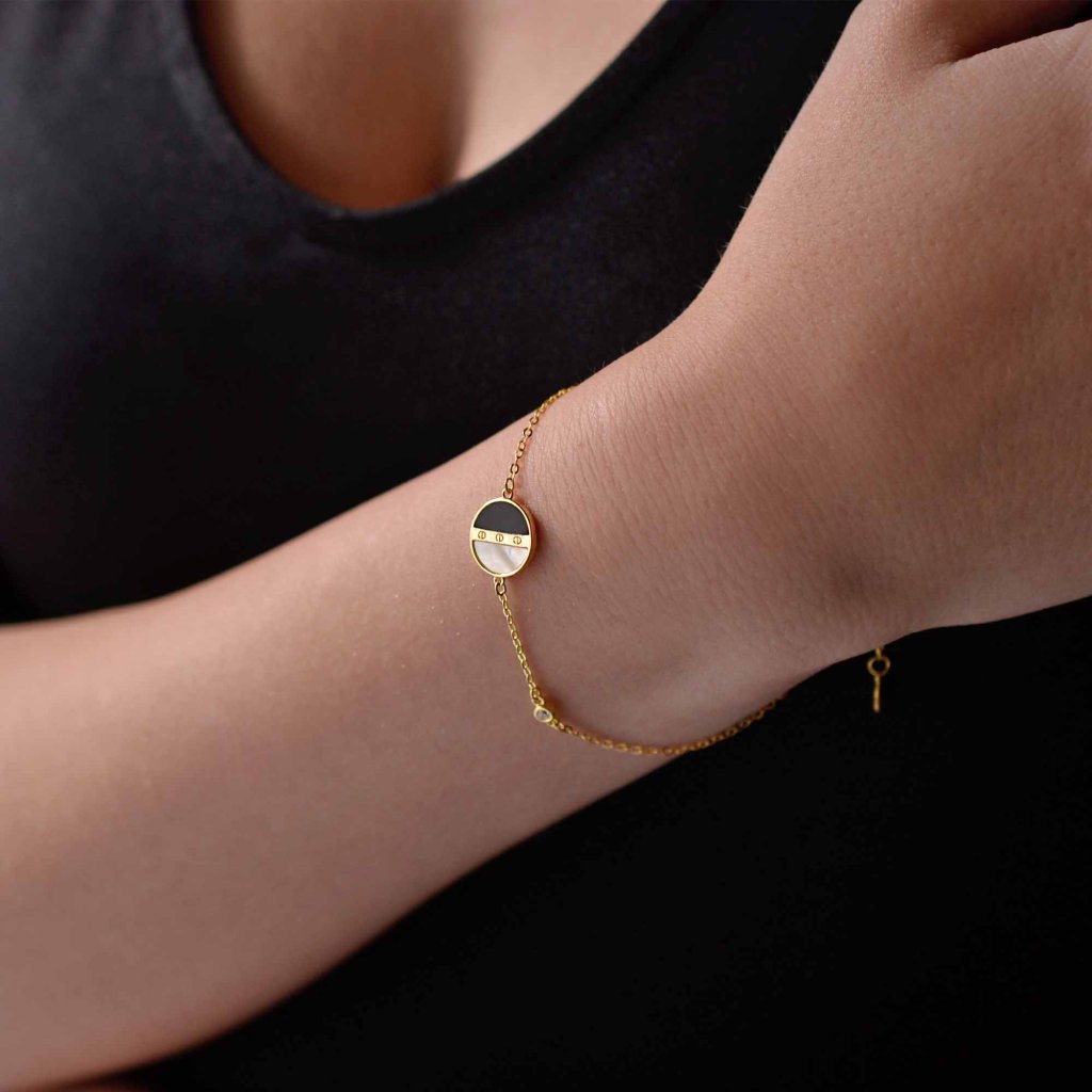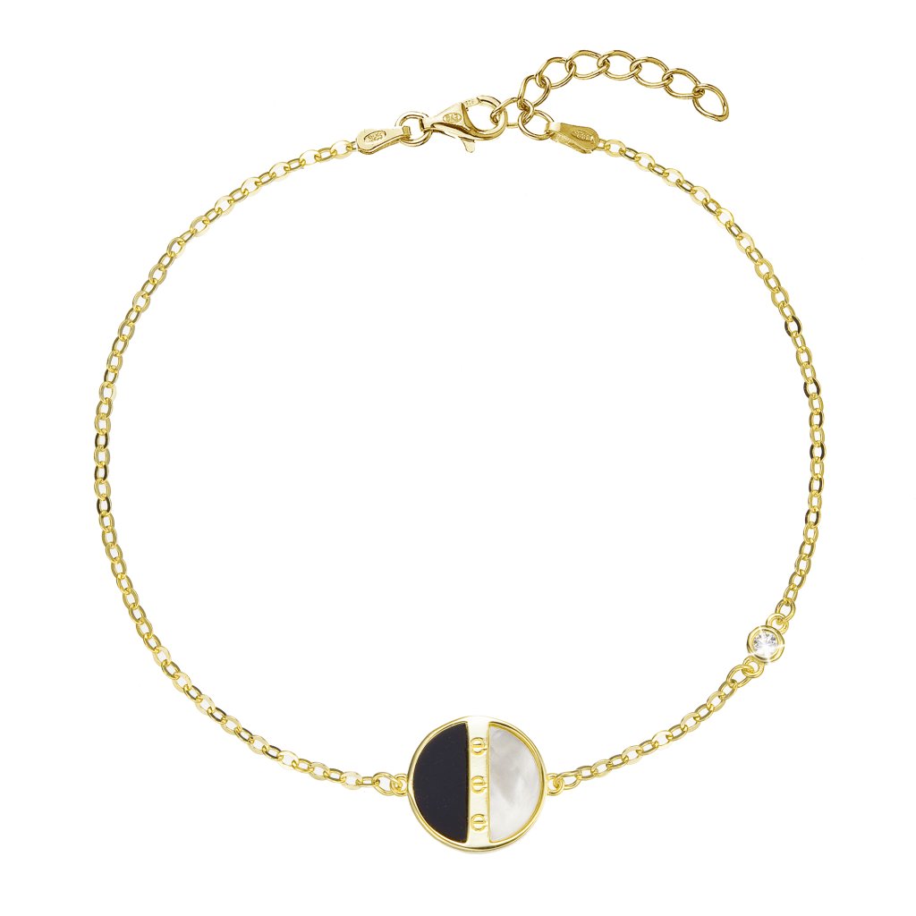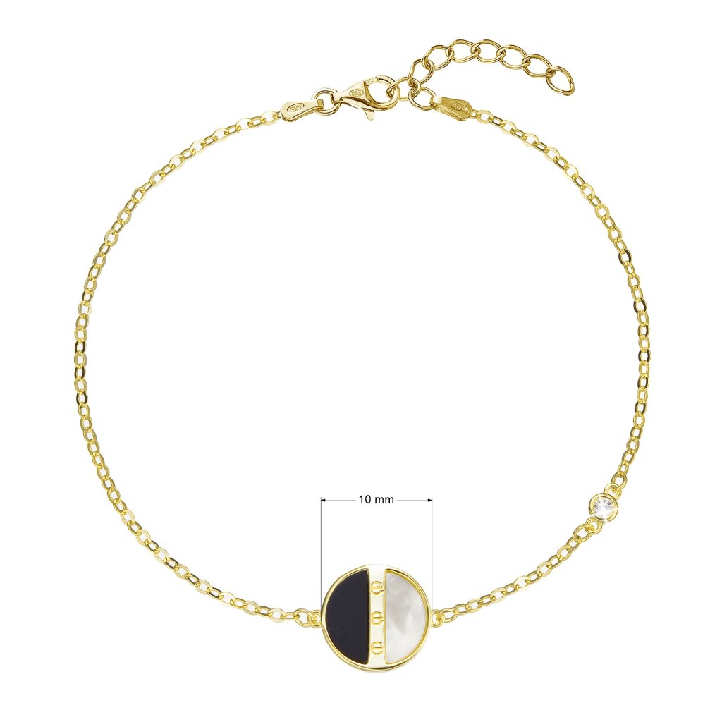 Pozlátený strieborný náramok retiazka s okrúhlym čiernoperleťovým príveskom 13026.1
